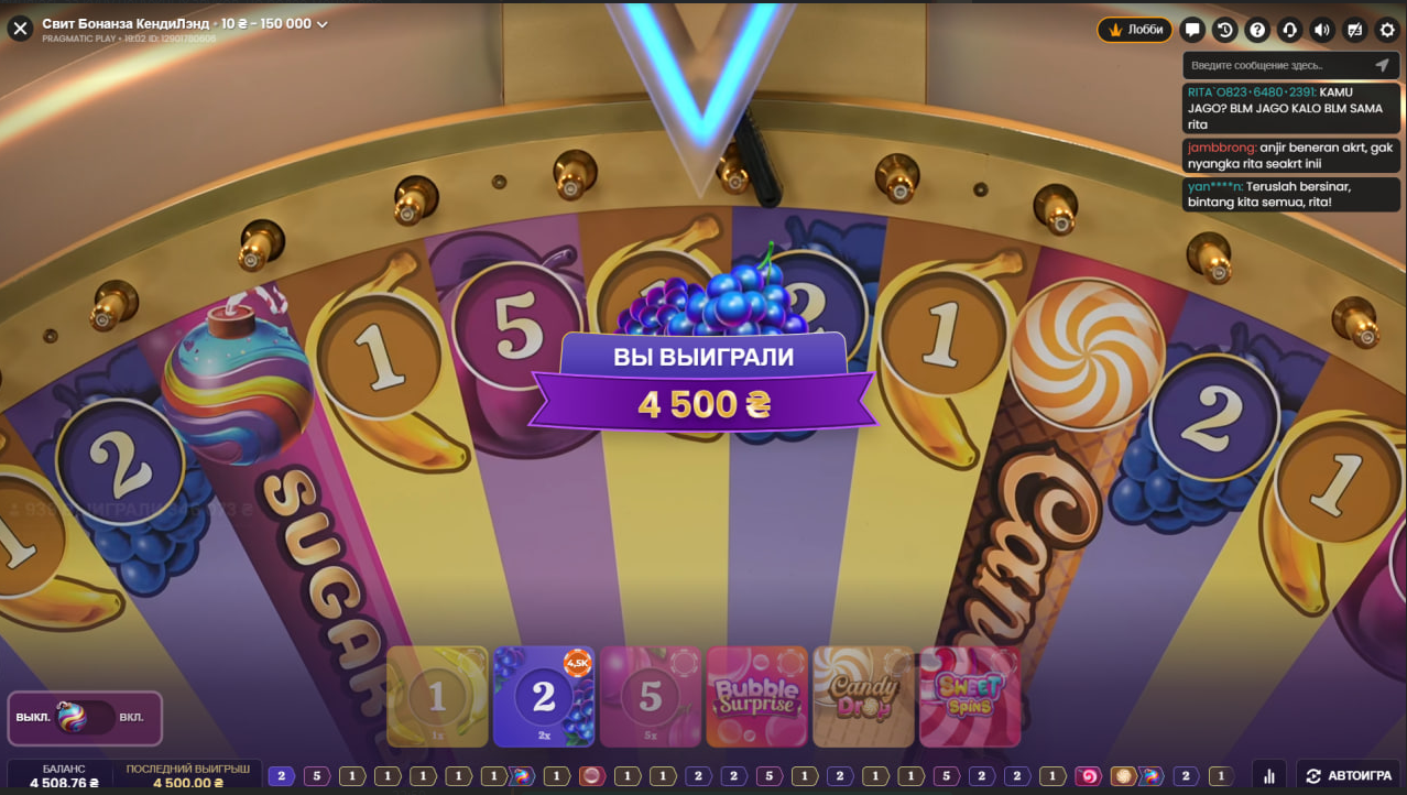 вырашыў пасля дэпазіту адразу ісці ў sweet bonanza candyland і ставіць алл ін, але паспеў паставіць толькі на бонускі і вельмі пашанцавала, бо выпала адзінка, пасля гэтага 1500 грн паставіць на 2, цуд адбылося і на мой баланс заляцела 4500 грн, вельмі прыемна, калі ва-банк працуе