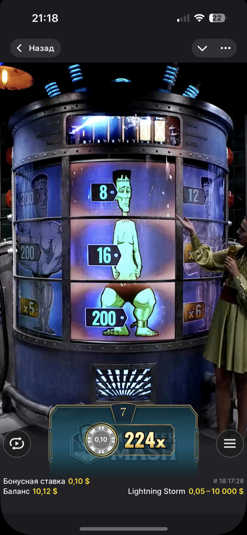 Сегодня я вновь решил заглянуть в лайтнинг шторм с утра пораньше, перед началом муторного буднего дня. Поймал бонус Monster Mash с топслотом 2х, который обычно не сильно щедр на иксы, но в этой бонуске ноги у него были просто как базуки! Целых 200х всего за ноги.