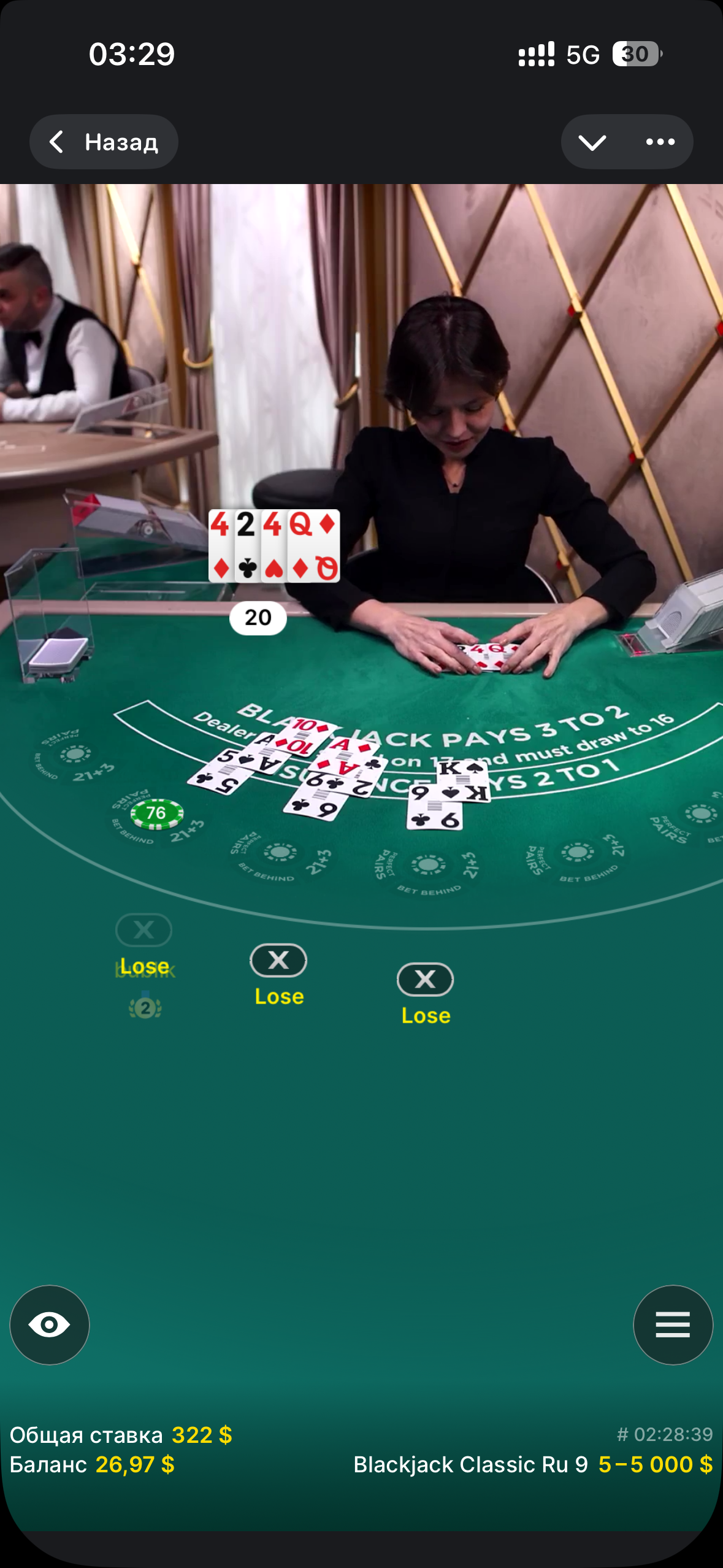 Моя сессия в блекджеке финал
