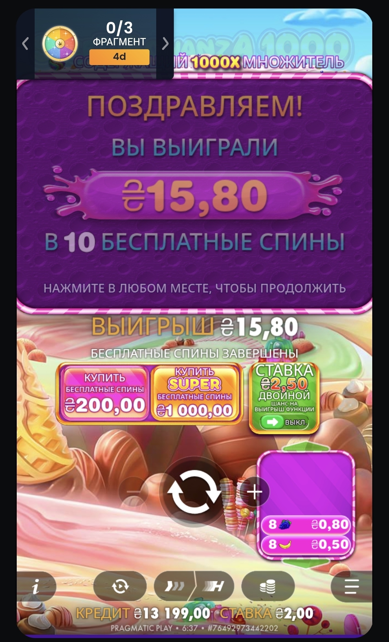 Бонанза як не грала ў звычайных спінах, так і не грае ў купленых топавых бонусках. Даўно не заходзіла туды і вось вырашыла купіць бонускі з шансам выпадзення 1000х бомбы. Рэзультат на скрынах, не грала нават на 20 х бомбе, даўно ўжо бонанза не та. Што выбіць бонуску немагчыма, што купленая дае пару іксаў. Слот стаў не для гульні, а выкачка дэпазіту.