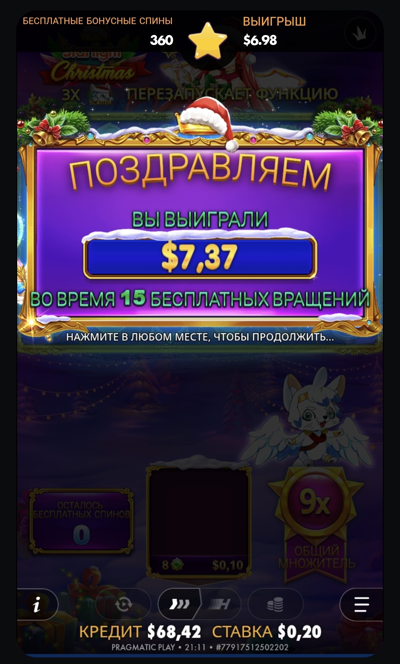 Станавіцца цікава, як гуляюць фрыспіны ў слоце Starlight. Зайдзіла ў звычайны сыгровак — няма, пра бонуску нават не кажу. 100 спінаў без гульні і іксаўак, потым перайшла ў Christmas-версію, гуляла крыху лепш і выпала бонуска. Вынік на скрыншоце, 40х. Пытаюся: гэтыя спіны, з якіх выбіваюць бонусы, даюць больш за 100 іксаў ці ўсё так закручана, што спадзявацца не варта, а круціць лепш там, дзе будзе акуп?