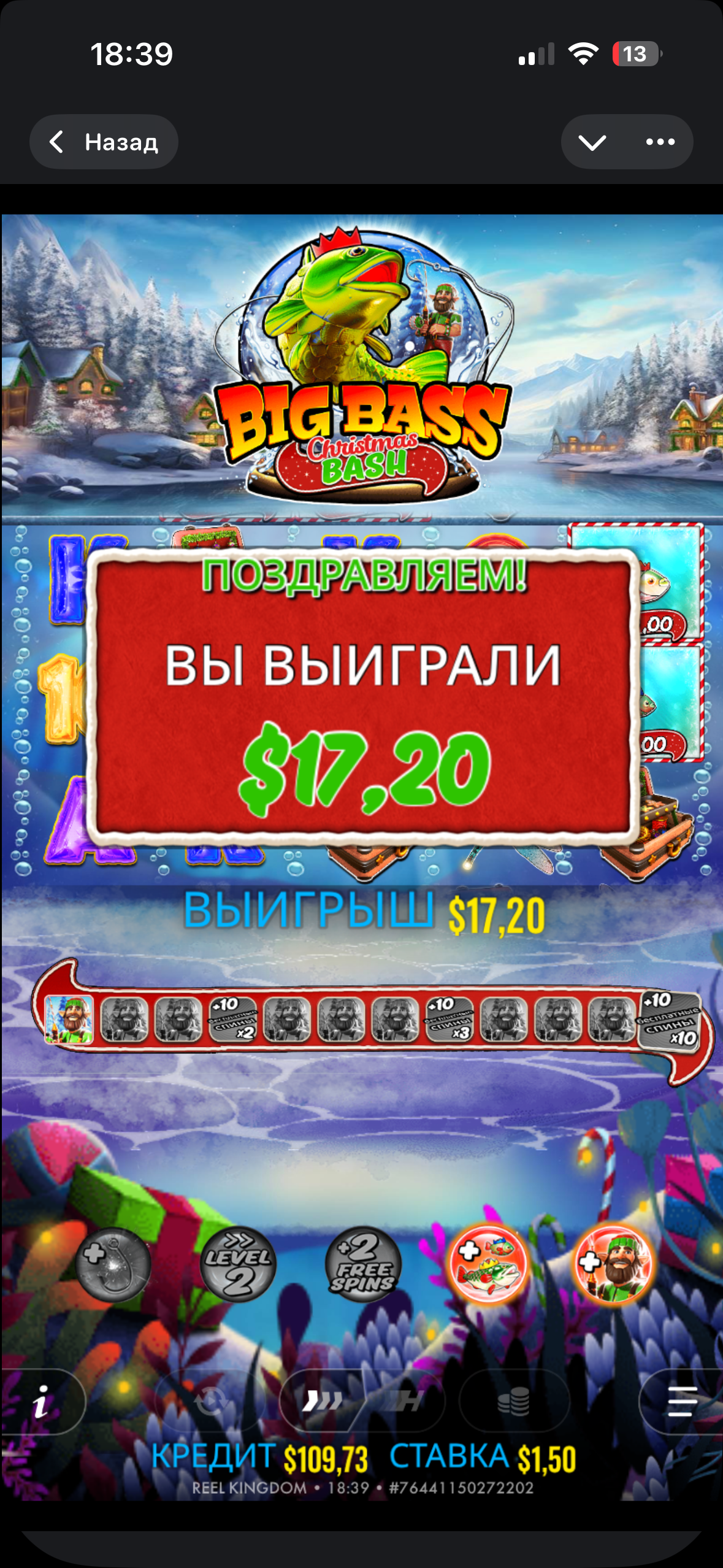 Гэтую рыбалку, перш чым хоць што-небудзь падняць, я не ведаю, колькі бонусаў трэба паглядзець, але менавіта ў гэтай часам проста бываюць сесіі, калі ён падрад іх кучу ставіць і паднімае баланс. Не ведаю, я проста ніколі не ўпіраюся ў рыбалку, проста іду па ўсіх, якая грае, тую і дажымаю. Большой икс ніколі не лавіў да х1000, але практычна ва ўсіх рыбалках.