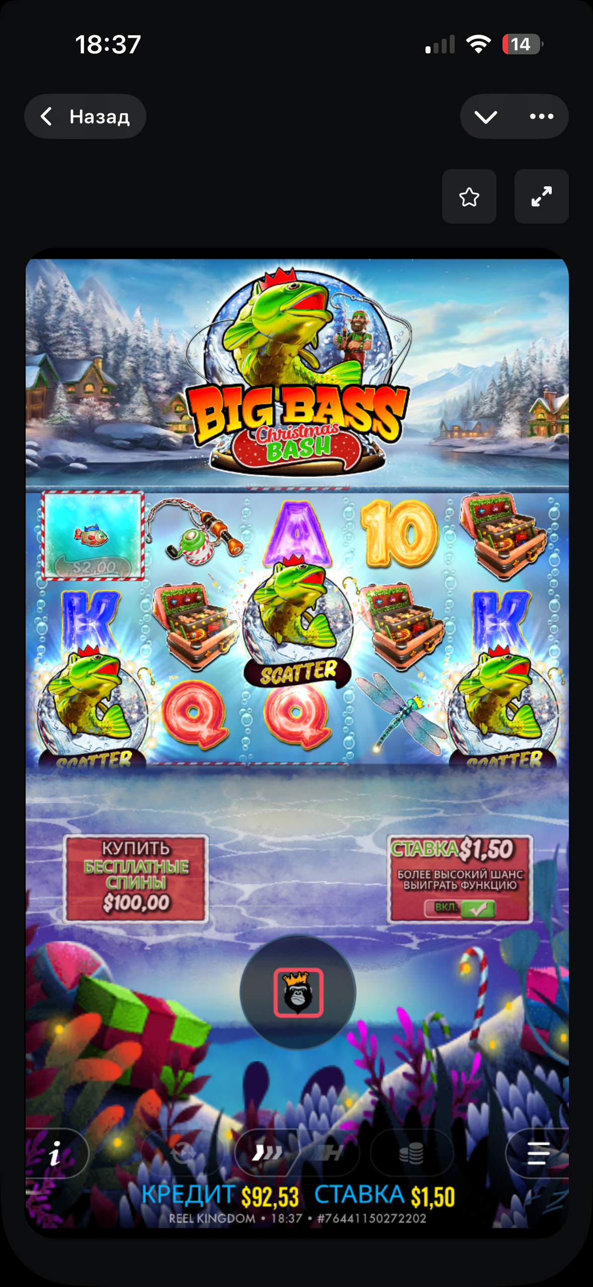 Гэтую рыбалку, перш чым хоць што-небудзь падняць, я не ведаю, колькі бонусаў трэба паглядзець, але менавіта ў гэтай часам проста бываюць сесіі, калі ён падрад іх кучу ставіць і паднімае баланс. Не ведаю, я проста ніколі не ўпіраюся ў рыбалку, проста іду па ўсіх, якая грае, тую і дажымаю. Большой икс ніколі не лавіў да х1000, але практычна ва ўсіх рыбалках.
