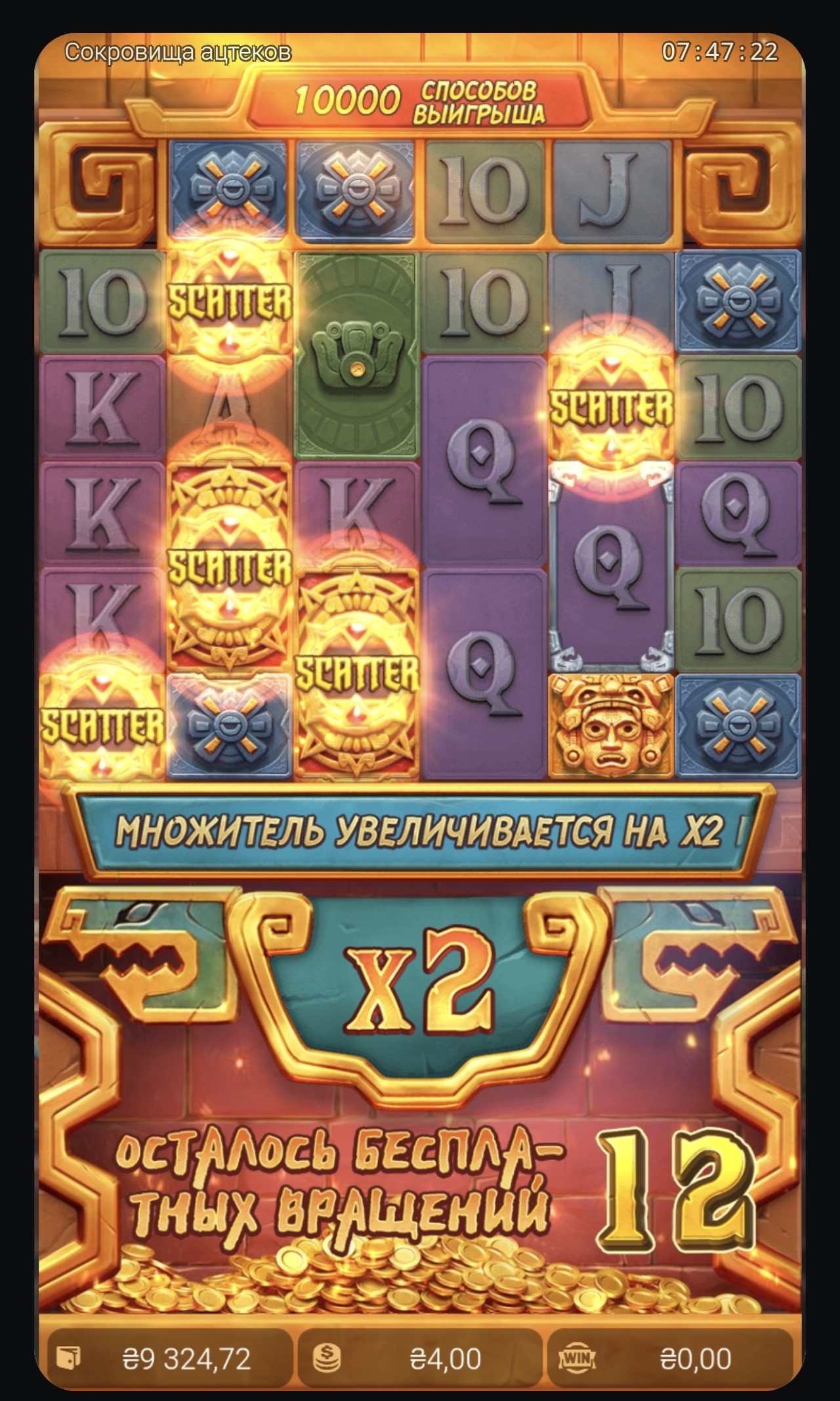 Адзін з слотаў, які можа добра нагуляць, гэта Скарбы ацтэкаў, часта там адыгрываюся і па валатыльнасці прыемна гуляць. У гэты раз выбіла бонуску са спінаў і не дарма, кажуць, калі злавіць увесь рад, можа на максвін сыгровак паставіць. Але пакуль злавіла толькі 300х, што таксама прыемна, але апошнія 4 спіны проста не прыносілі сімвалы, быццам тумблер сработаў і больш не дае((