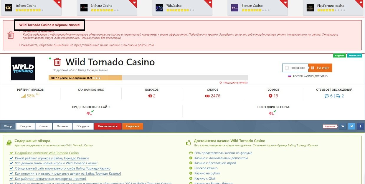 Wild Tornado Casino не вельмі актыўна абмяркоўваецца карыстальнікамі ў каментарах і ў кам’юніці. Паўдзельнічаць у дыскусіі на форуме можна у гэтых тэмах . Пакінуць водгук можна на старонцы з водгукамі.