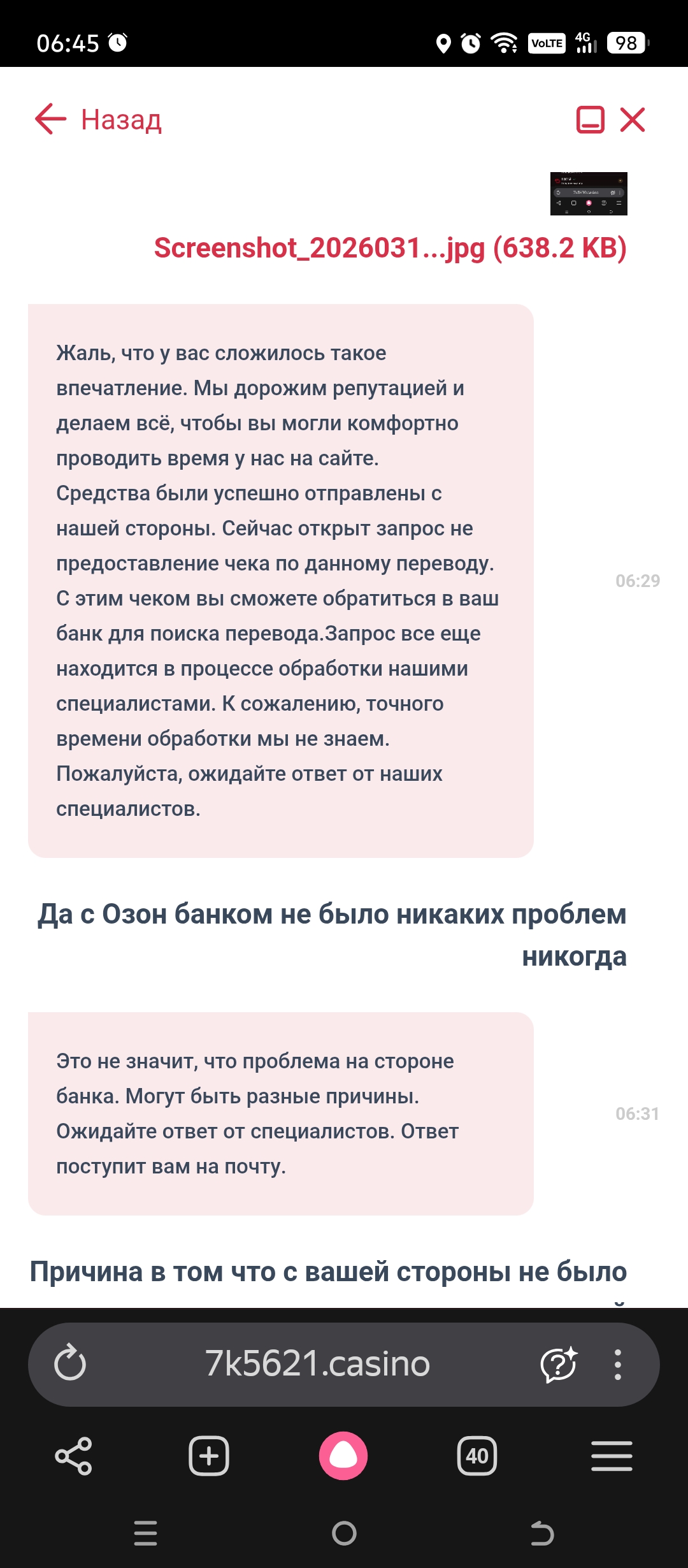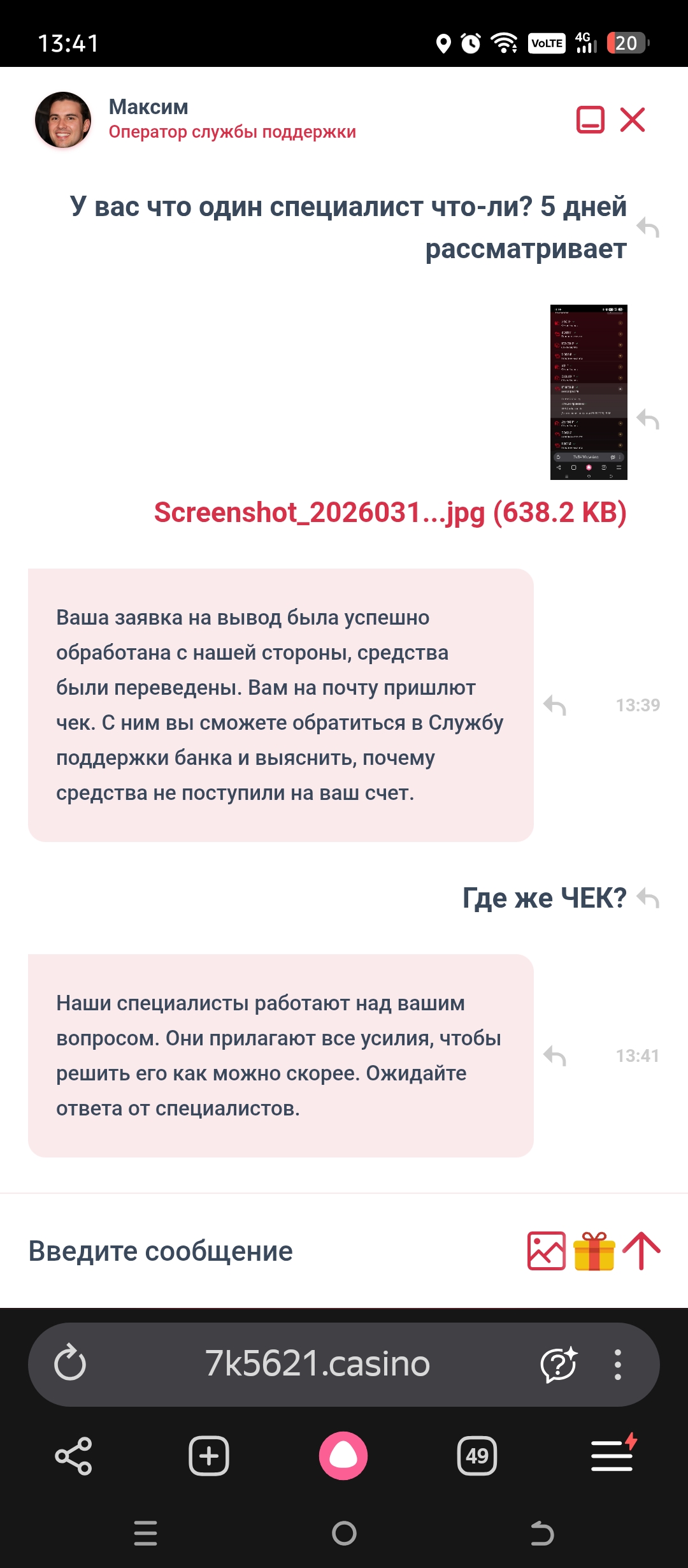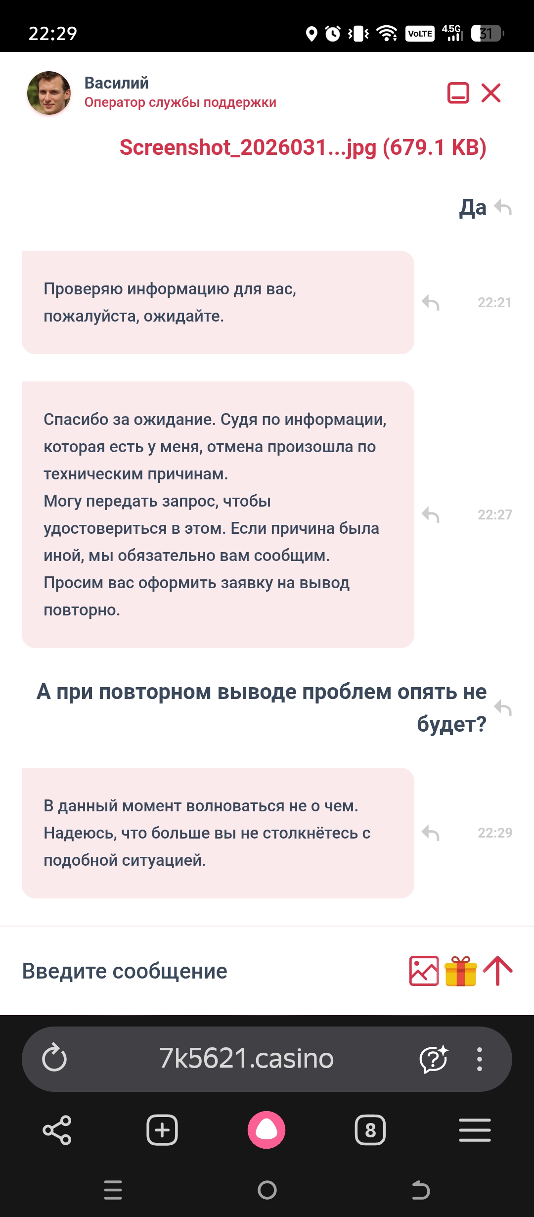 Прэтэнзія mariabukreeva87 да 7k Casino ад 12.03.26