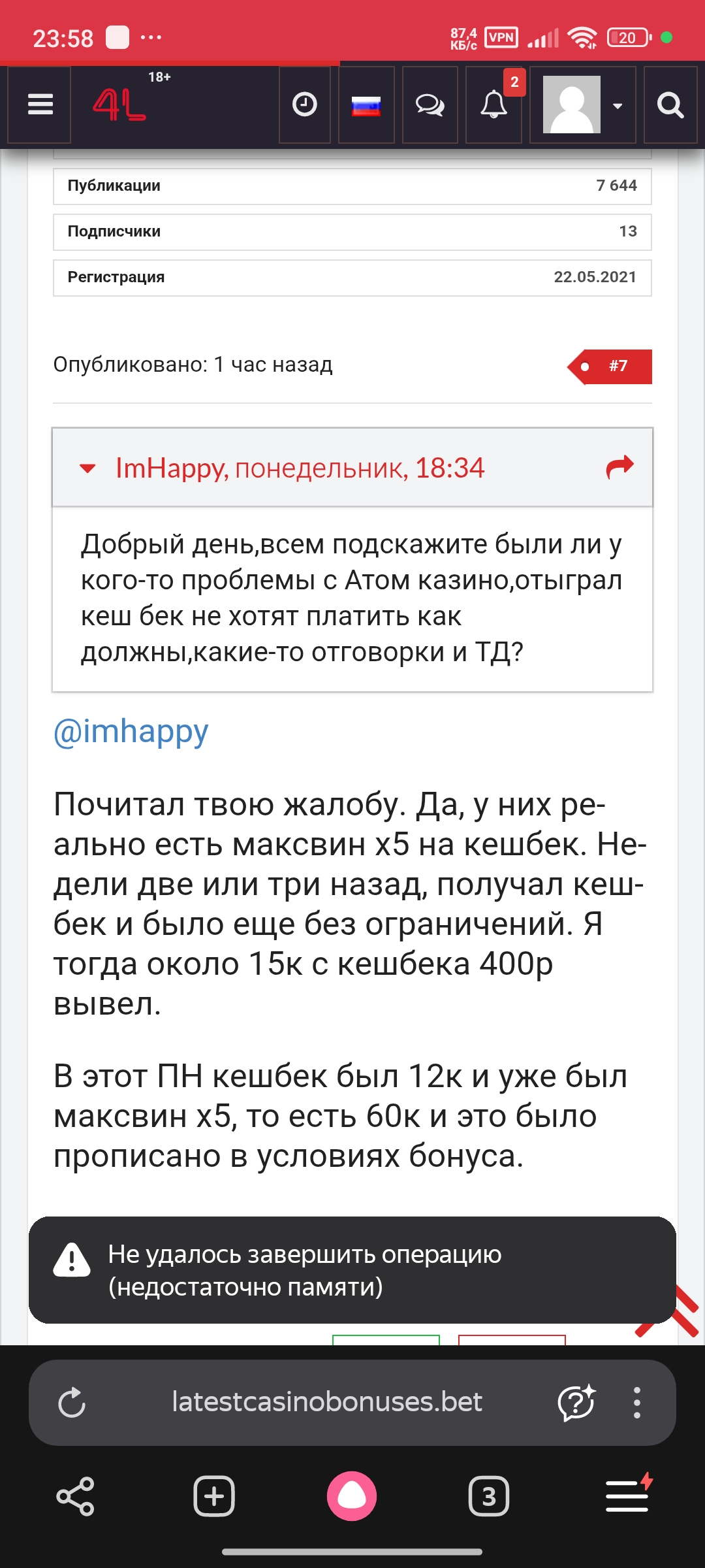 Так же ещё раз прикреплю скриншоты других людей с форума которые так же утверждают что в этот понедельник при активации кеш Бека у них так же как и у меня было написано макс.вин х5.