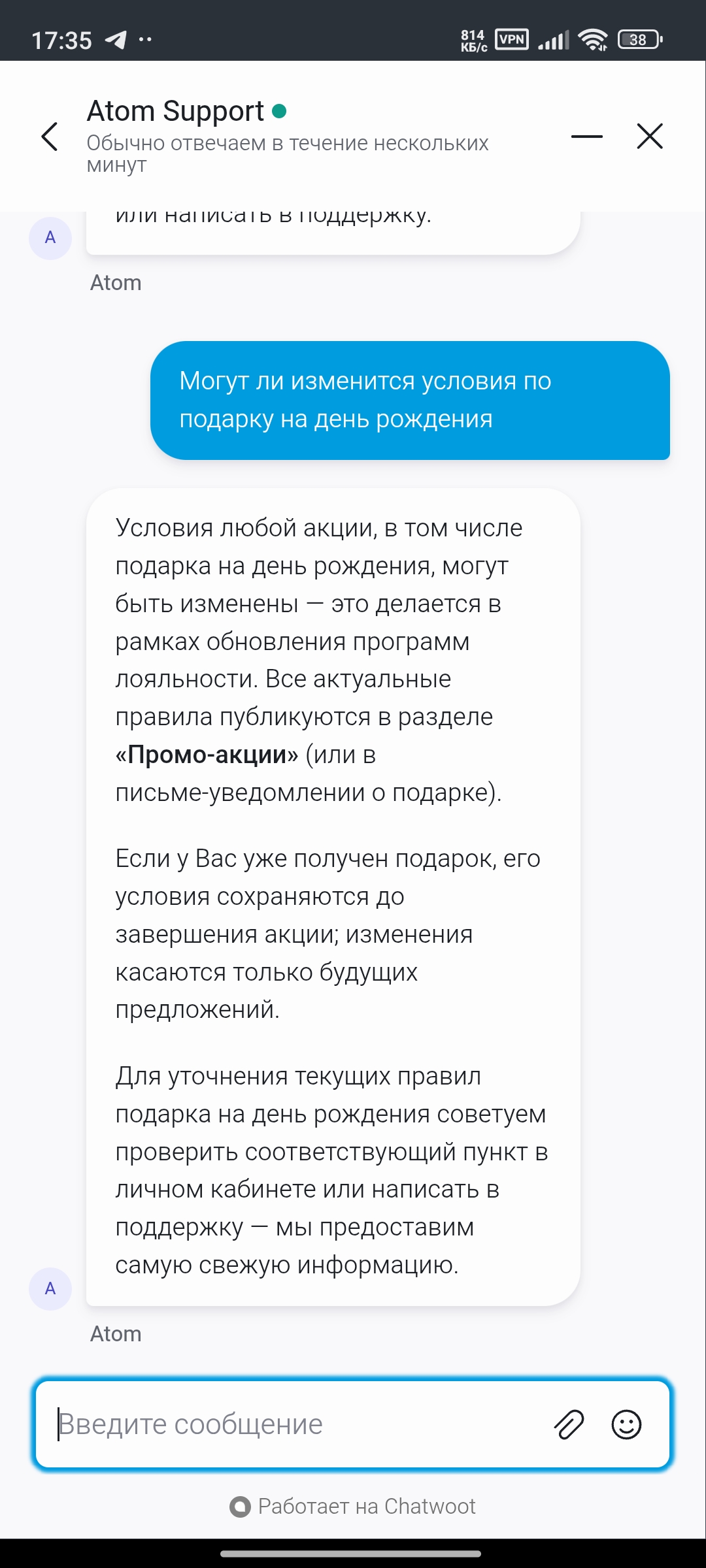 И чтоб было понятно я прикреплю ещё раз сообщение вашего оператора и вашего бота .