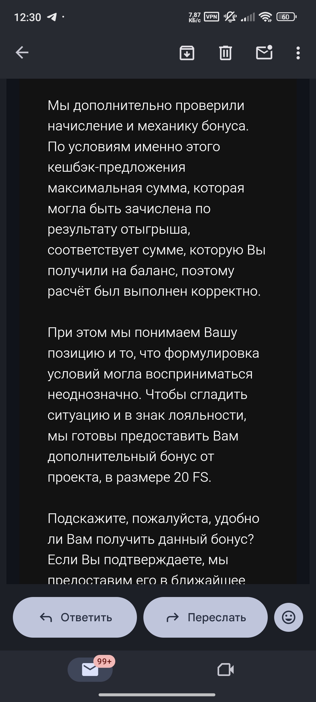 Если администрации форума потребуется подтверждение, мы готовы предоставить все материалы по расчёту и условиям активированного бонуса.