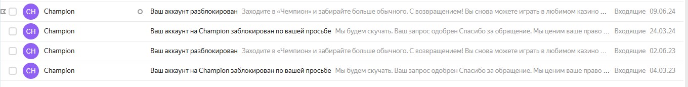 А 6.04.2025 попросили отменить жалобу, так как получили выигрыш и захотели его вывести. После чего, больше с вопросом блокировки Вы не обращались ни в online-чат, ни на почту, ни к менеджеру.