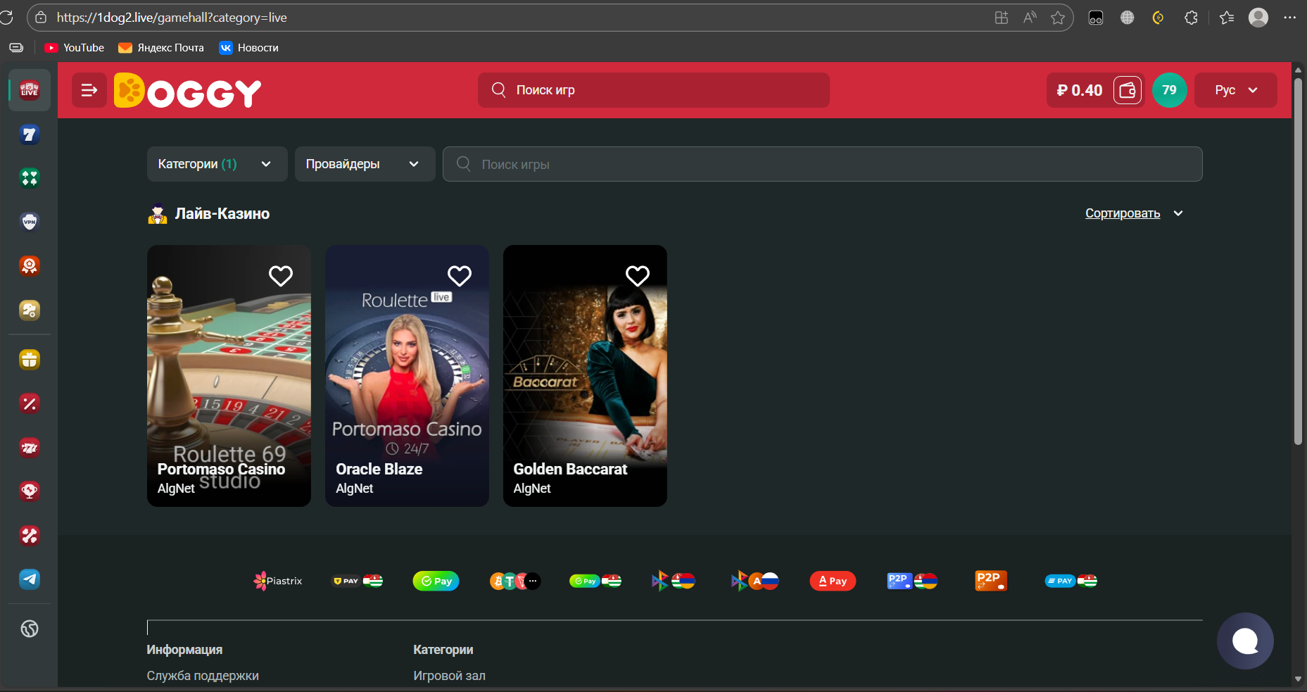 upd: хочу добавить, что у них просто пропали большинство провайдеров, написанные у вас на странице этого казино, а также пропали live-игры, на подобии crazy time