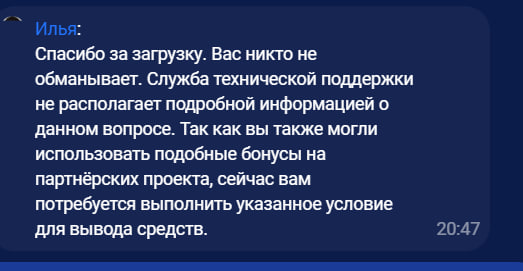 Дополню что все ссылает именно на “Злоупотреблениями” бонусами на их партнерских проектах,на вопрос где я использовал бонусы ответа не получил,это первый промокод который я использовал. Поддержка отвечает всегда по разному,искажая факты и вводя в заблуждения игрока.