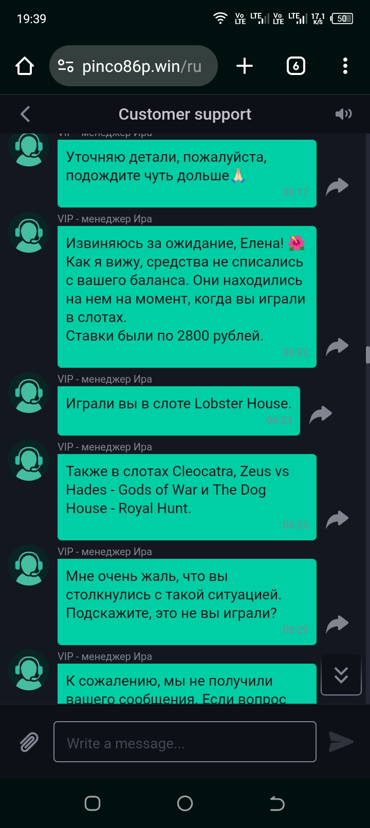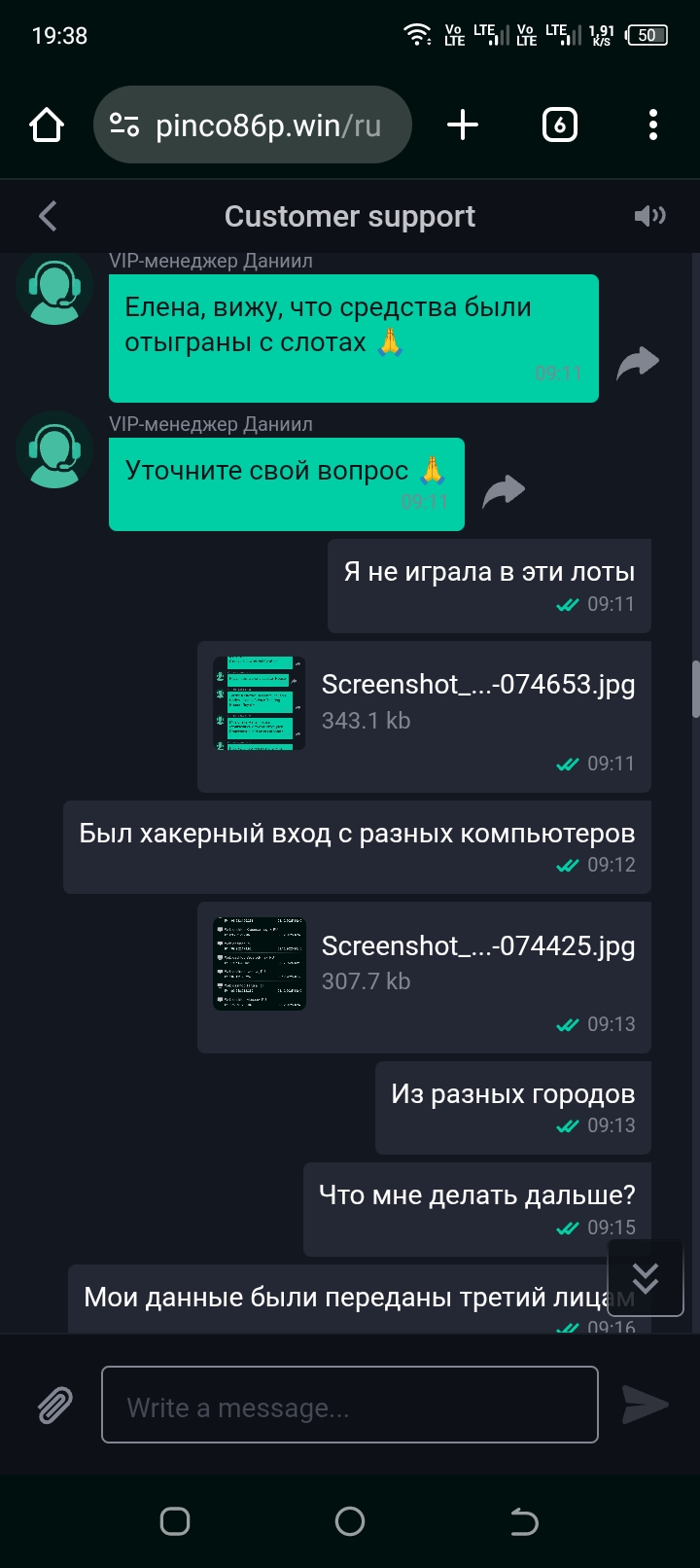 Прэтэнзія Elena2020_2025 да Pinco Casino ад 02.01.2026