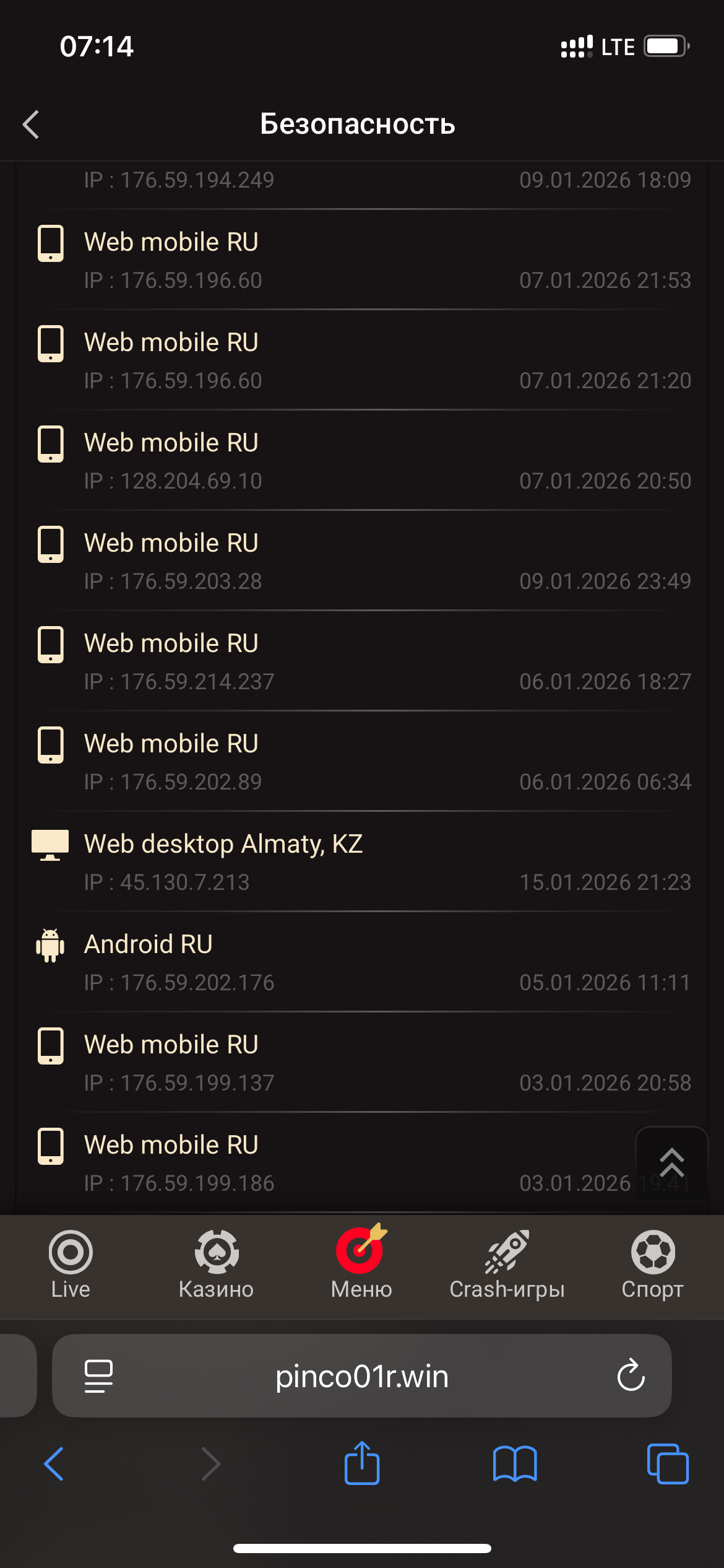 Вот ещё очень важный момент сотрудник Pinco, почему то до этого входов ни каких не было, пока на счету у меня не образовался очень необходимая для моей жизни сумма которая была проиграна почти сразу