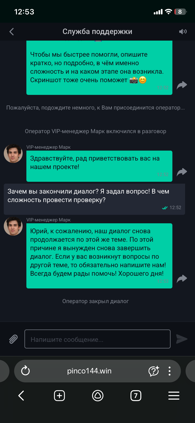 @pinco1 сколько ещё вам нужно писать чтобы получить свои деньги? Операторы сразу заканчивают диалог и отвечают строго по шаблонам,конкретного ответа я так и не получил.