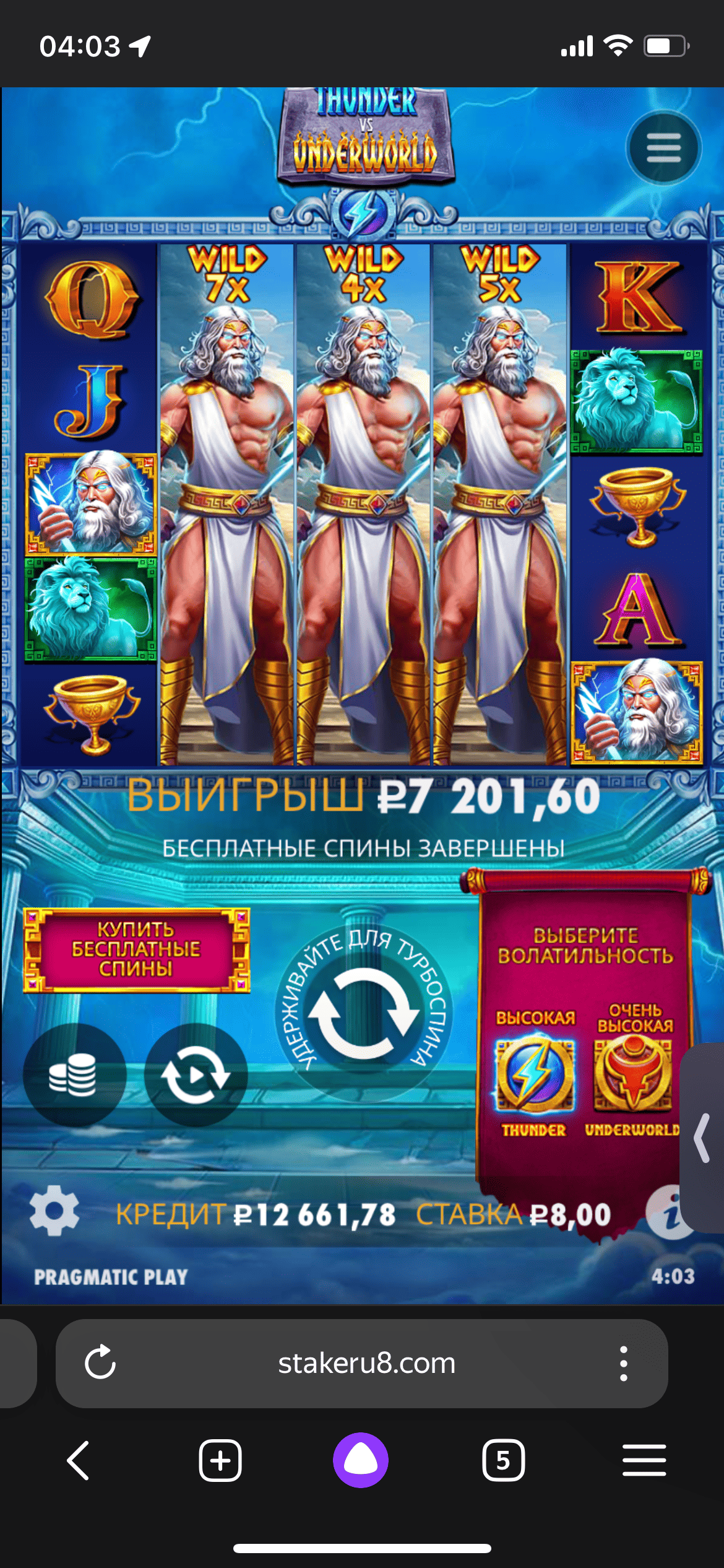 Слот Thunder vs Underworld их собственный аналог Zeus vs hides- в выбитой бонусе последним спинов поставил три шторы) х 900