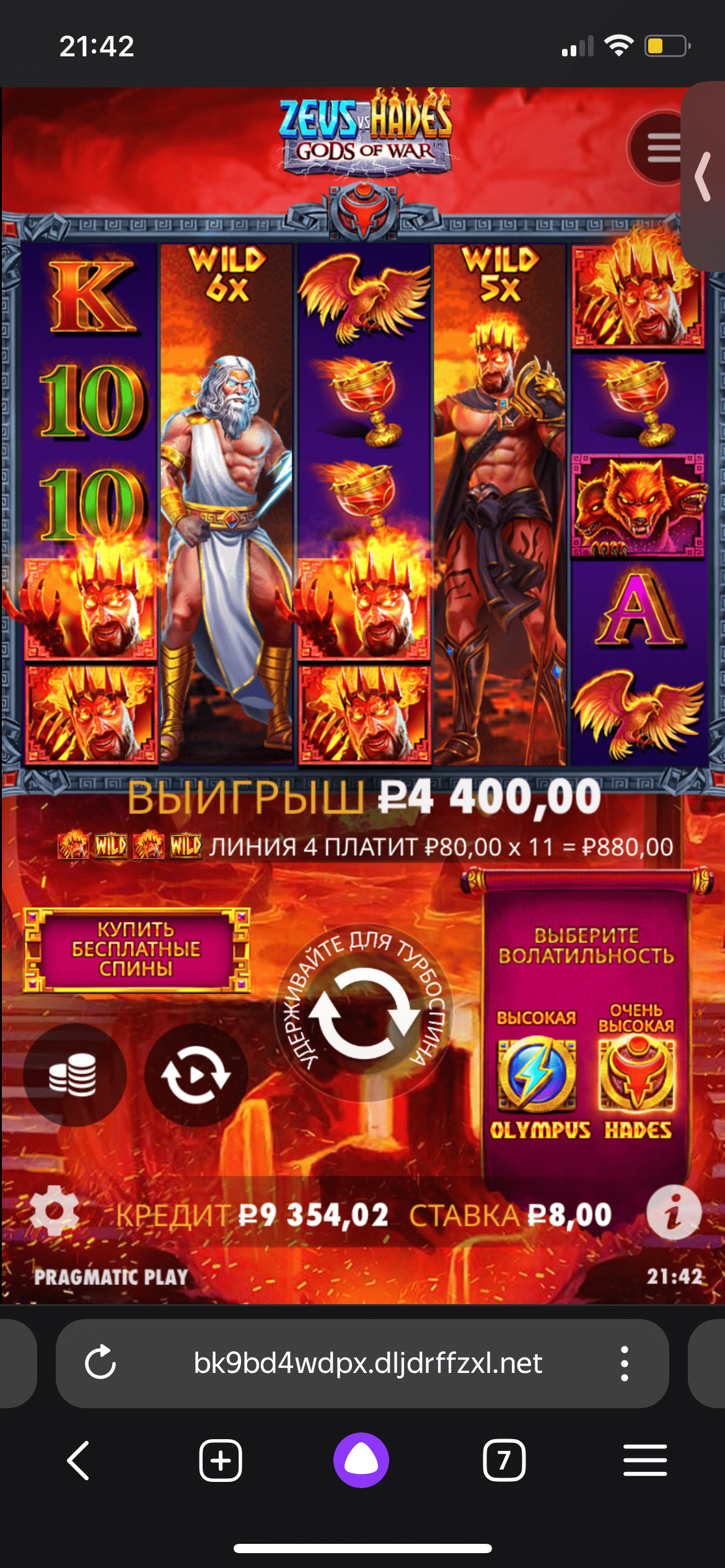 Слот Zeus vs hades x550 выбил в обычном спине тоже по минималке 8 руб.
