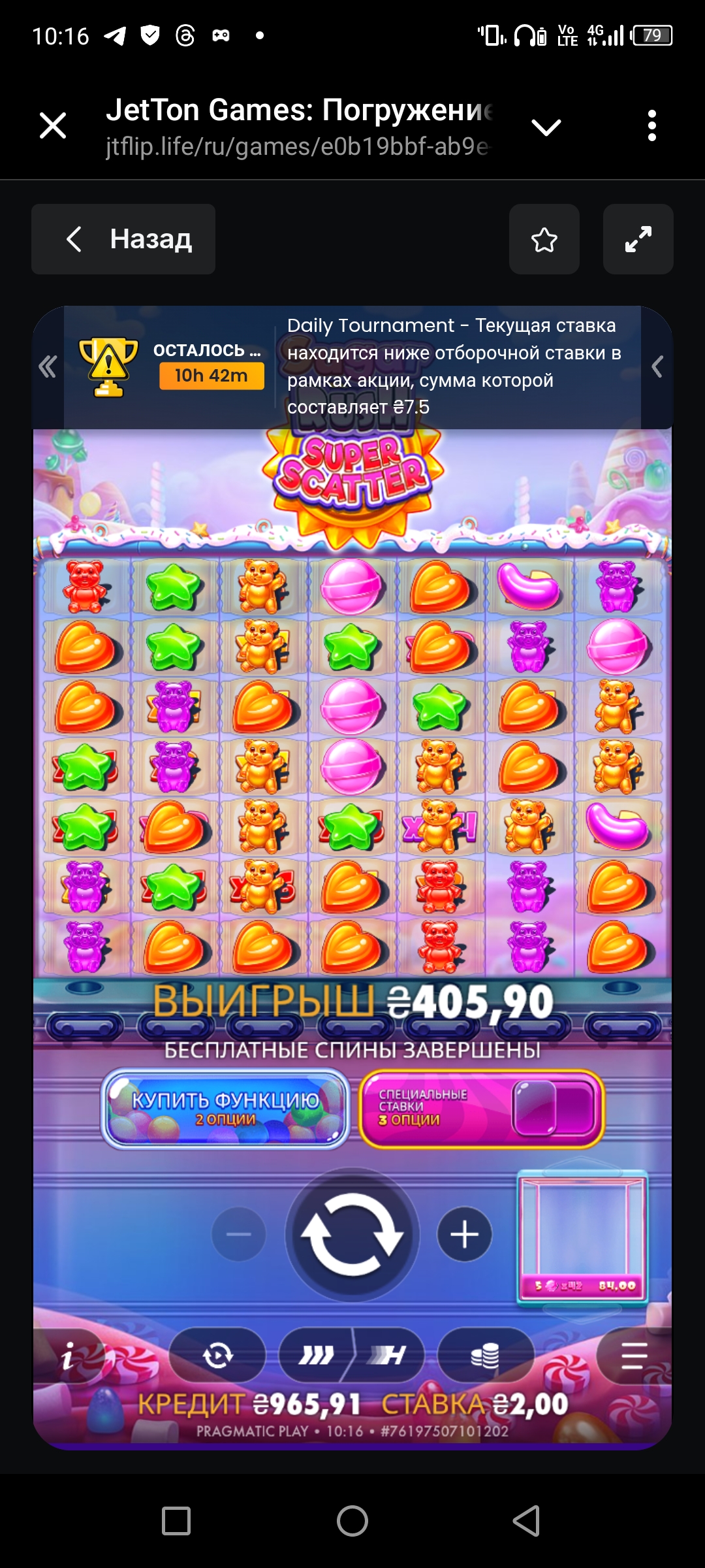 JETTON Pragmatic Sugar Rush Супер Скаттер x202