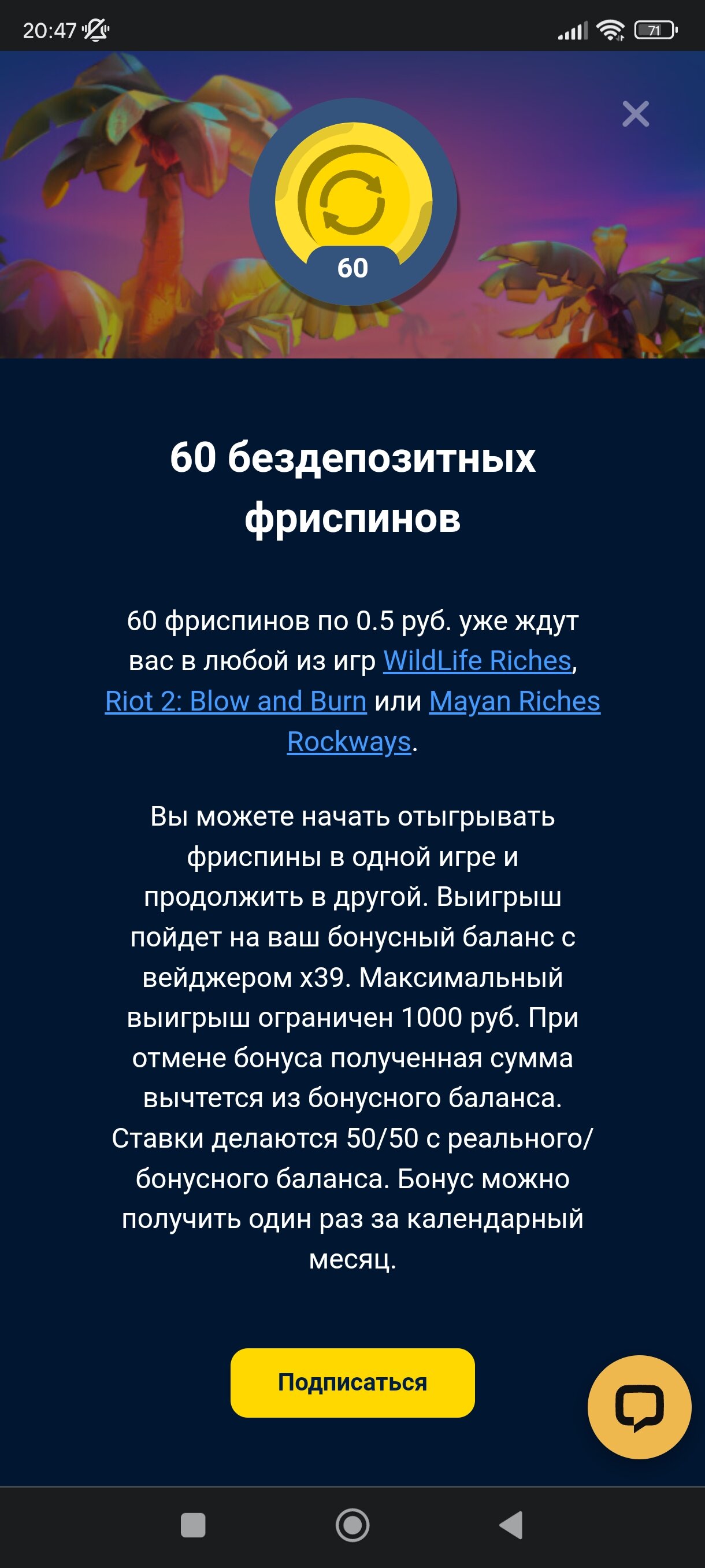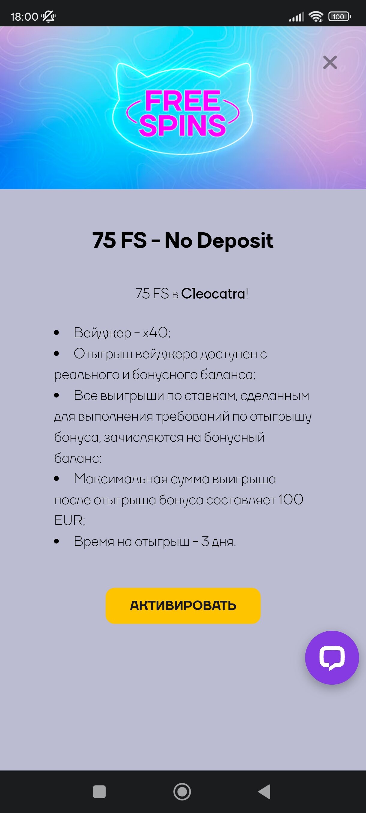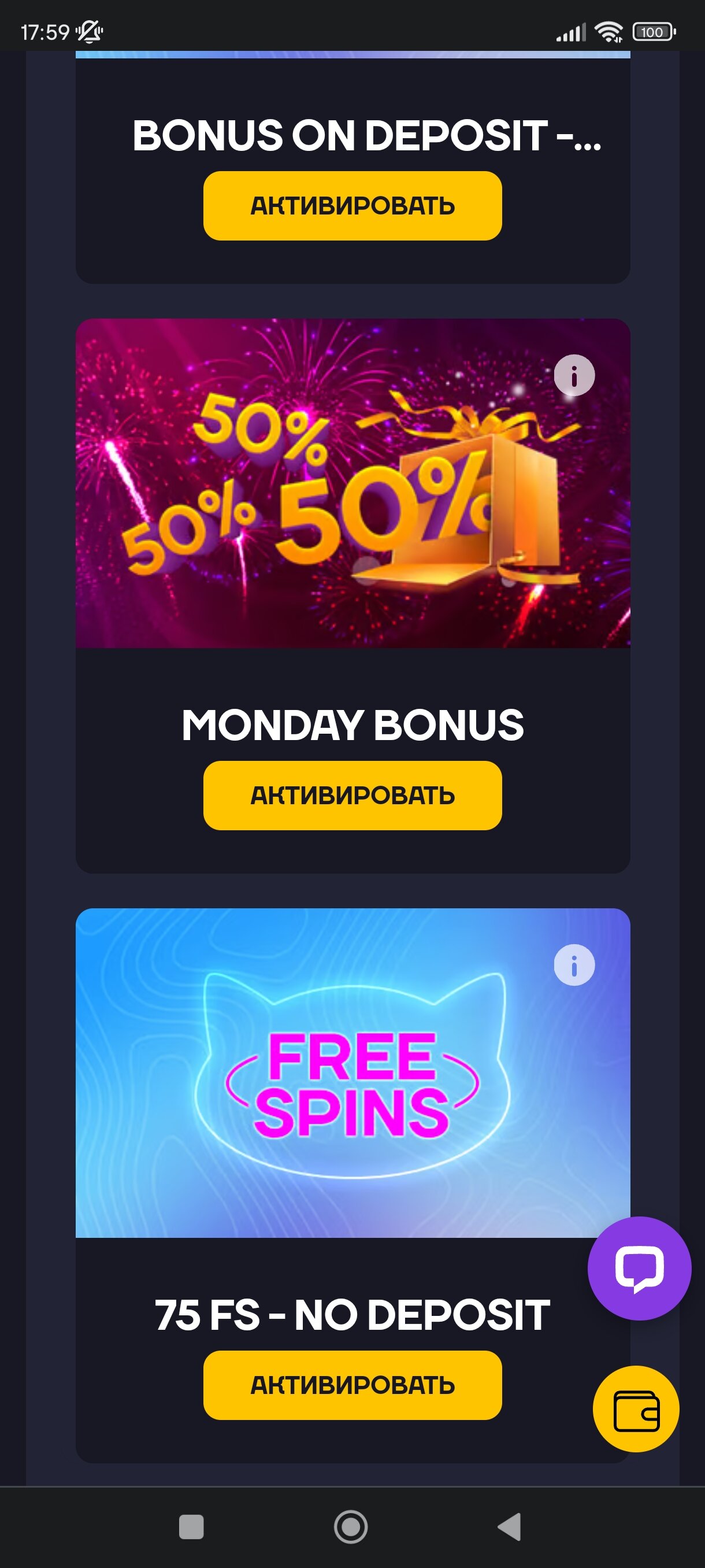 75 фс без деп,отыгрыш с бон !!! И реал
