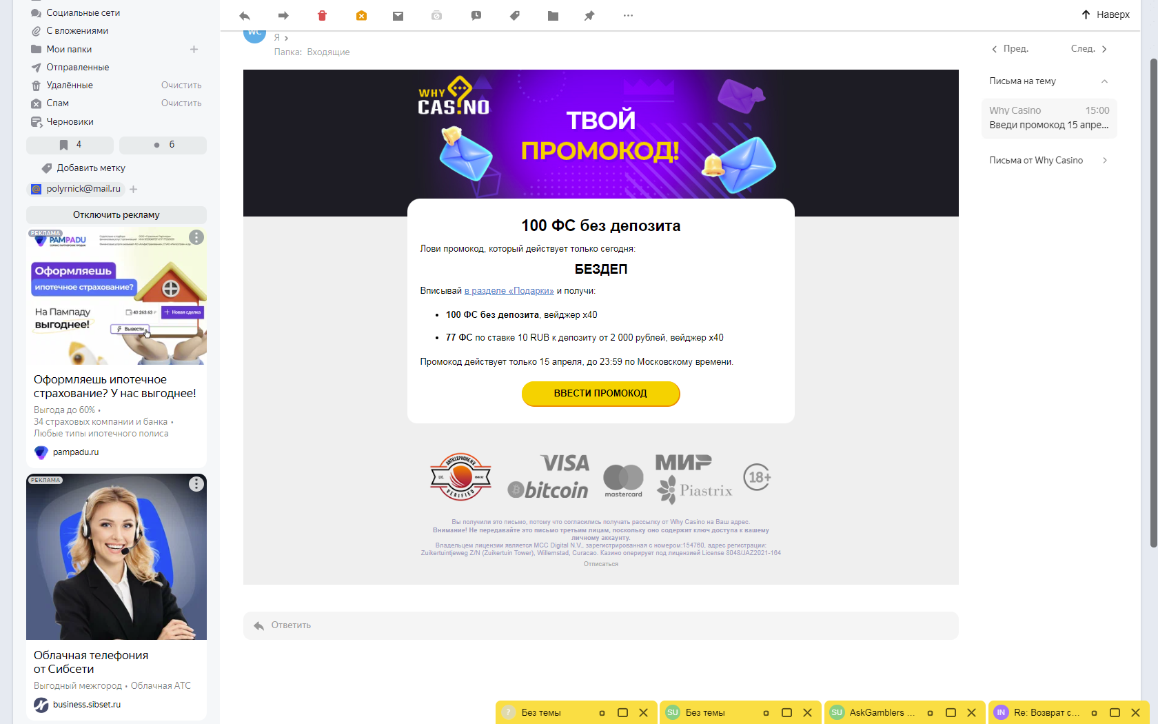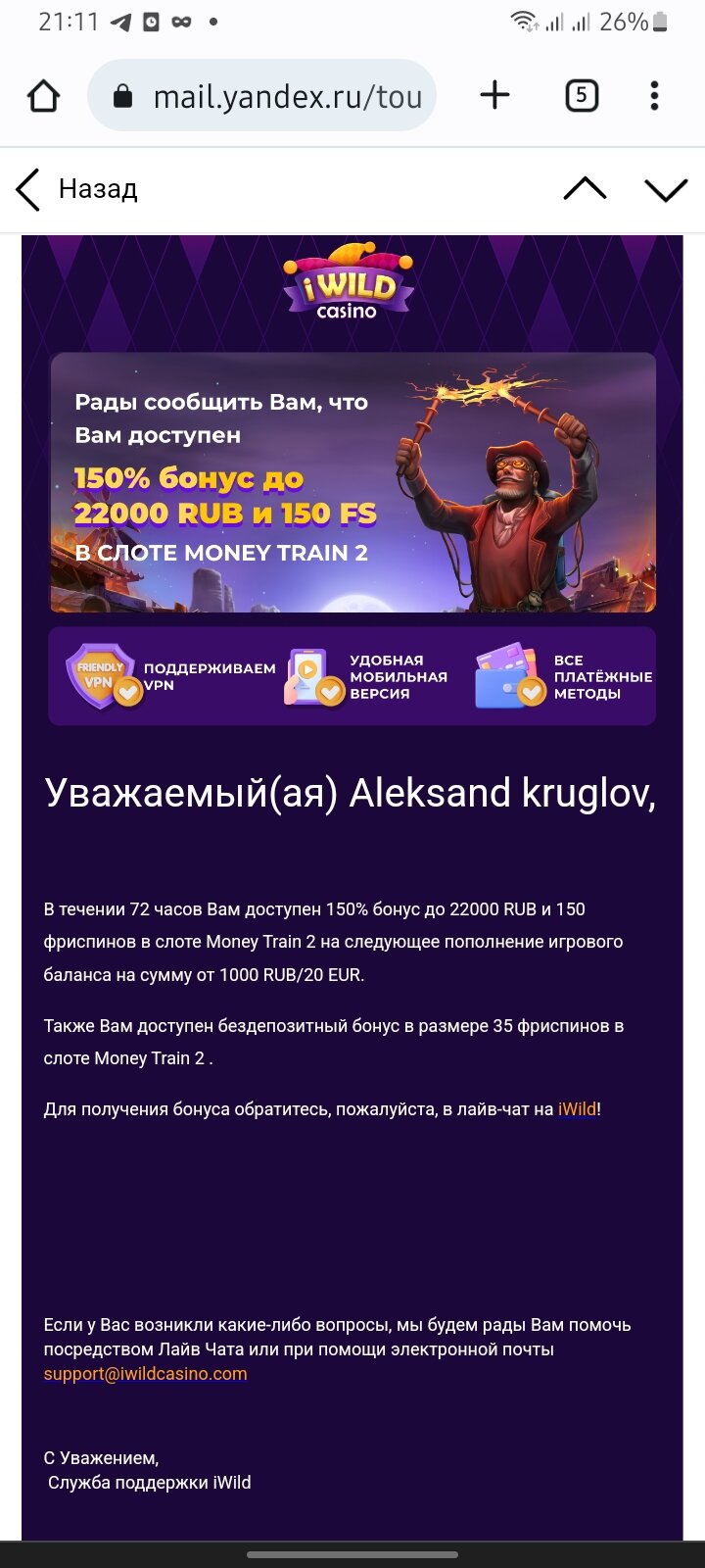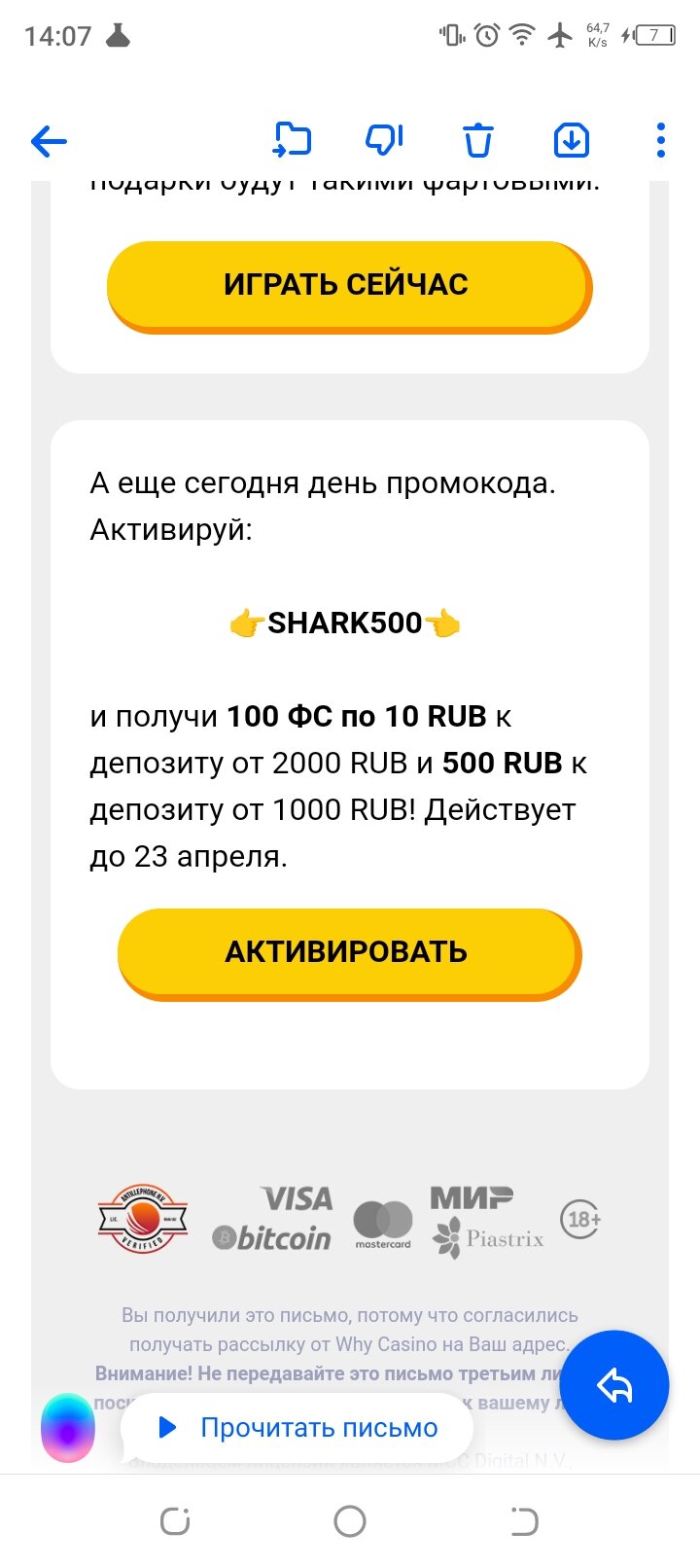 Why casino на почту пришел промик, пробуйте.![]()