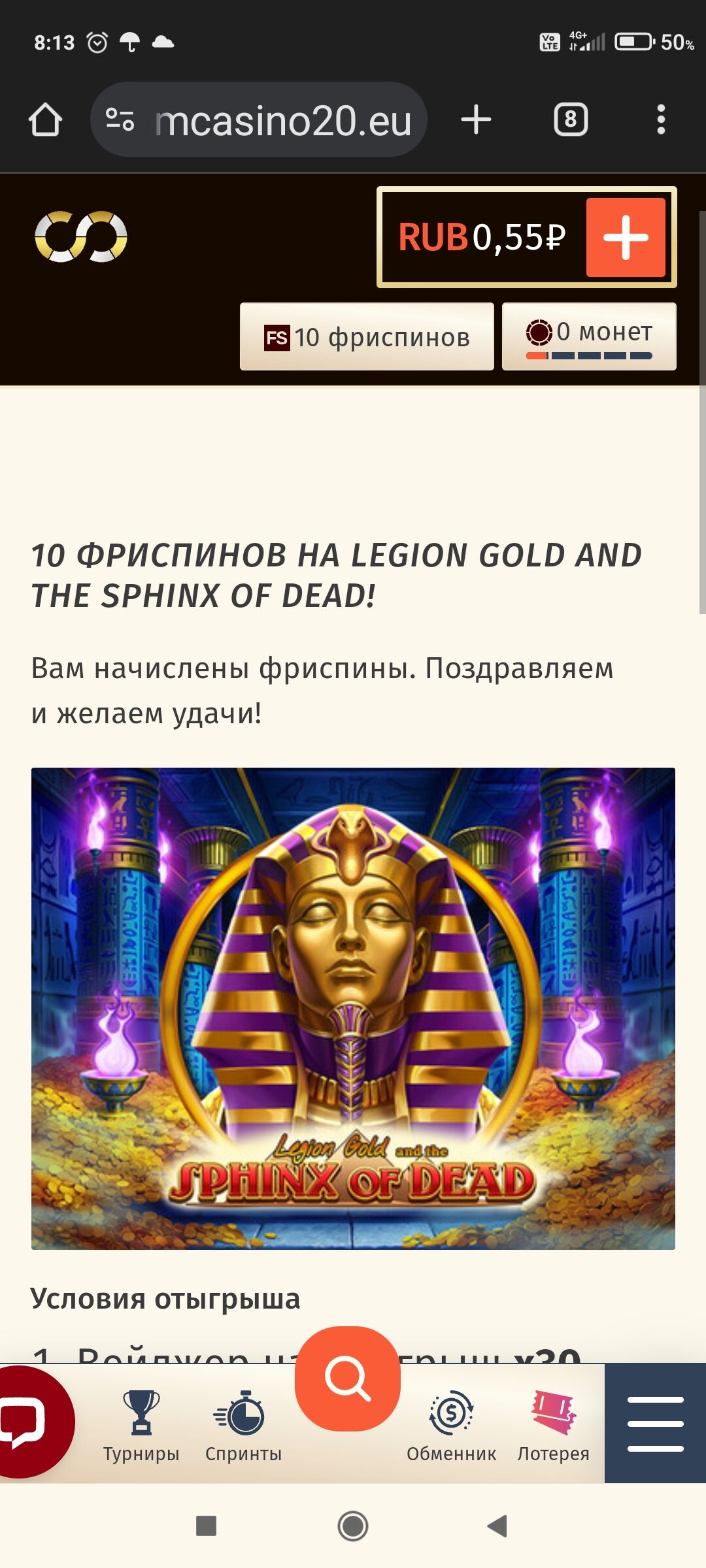 В Lollybet в профиле в акциях есть Мистери бокс,выпало 50 фрих в Book of Dead,отыгрыш как я понял там же