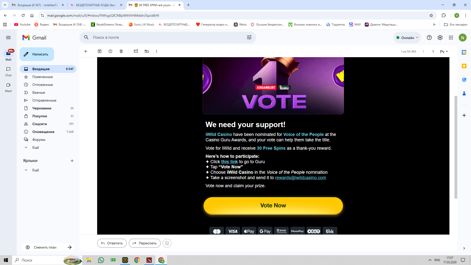 У гэтай тэме публікуем толькі БЕЗДЭПОЗІТНЫЯ КОДЫ І БОНУСЫ. Для абмеркавання, калі ласка, пераходзьце ў тэму: «АБМЕРКАВАННЕ КОДАЎ БОНУСАЎ І КАЗІНО».