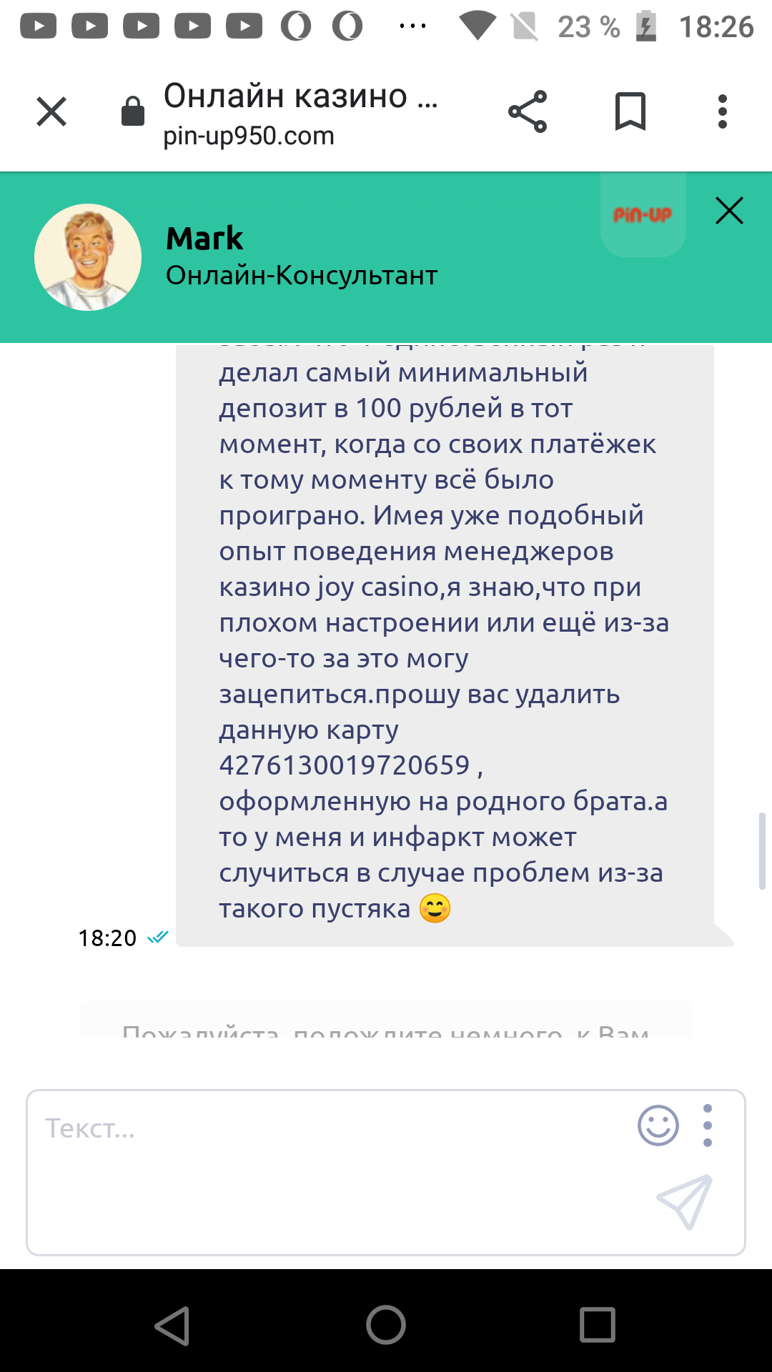 Все скриншоты переписок прикрепляю. Мой id в казино 3209359