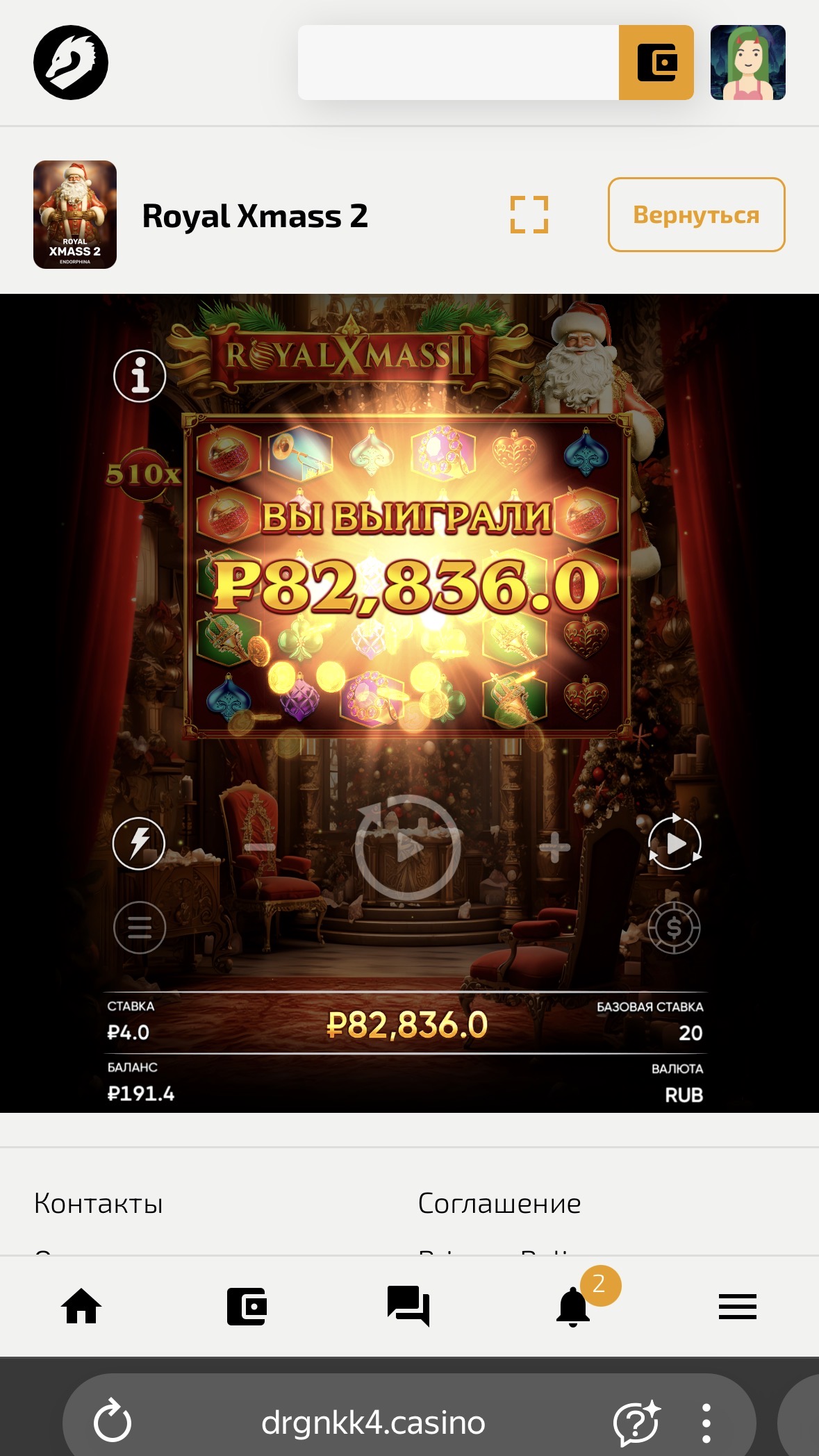 Максималка на х5000 в мадам дестини, а самый большой х в Royal x-mas 2