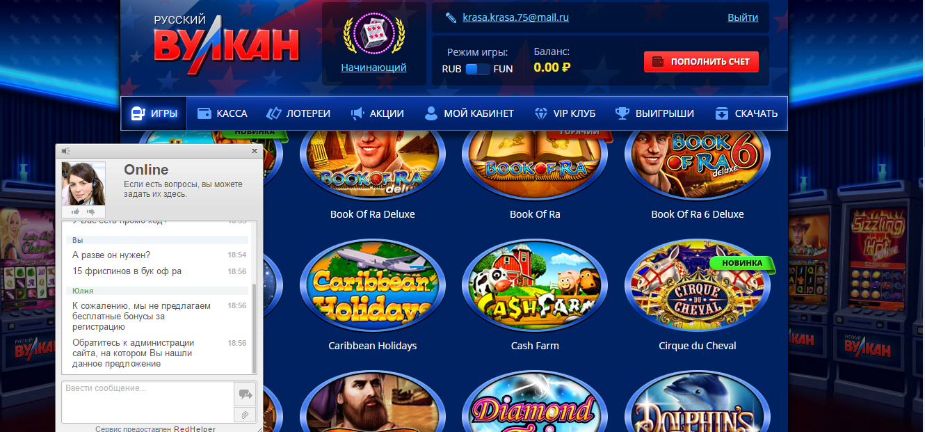 Бездепозитный бонус в казино Русский вулкан