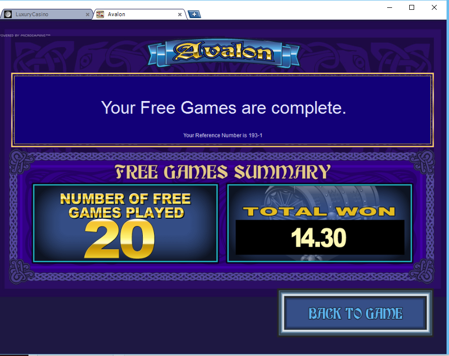 Luxury Casino 20 free spins on Avalon