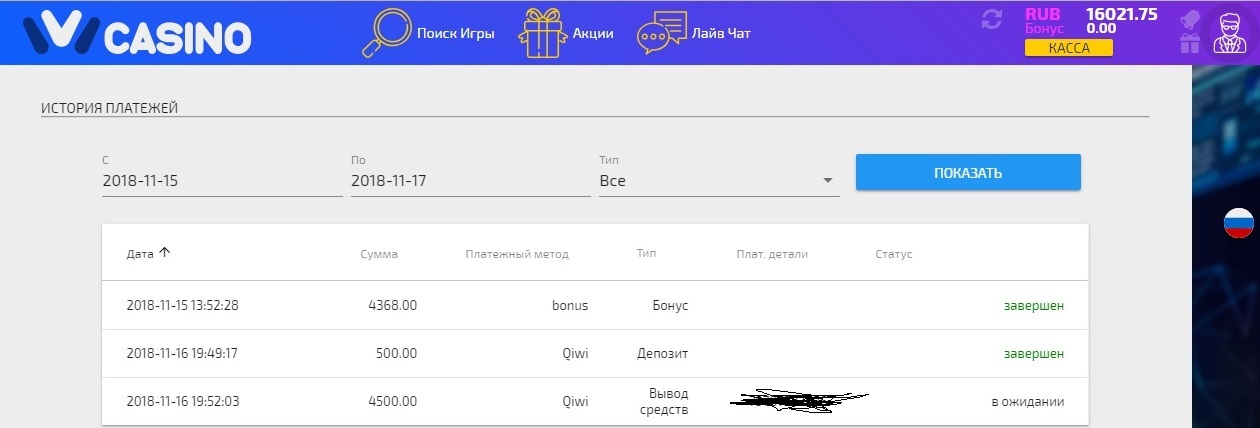 Только депозит мой в размере 500 рублей списали и не вывели, жду когда возвратят на Киви.