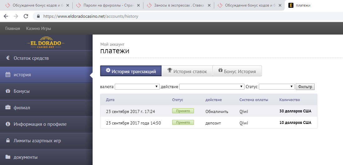 Тоже выводил бездеп оттуда же с eldoradocasino, отбил фриспины полученные еще за регу в 2017г, с фриспинов дало мелочь 0,79$, депал с киви исключительно для привязки платежки и вывели чуть меньше трех часов, никаких х3 вейджера на деп, обязательный бонус приветственый и.т.д короче без гемора вывели.