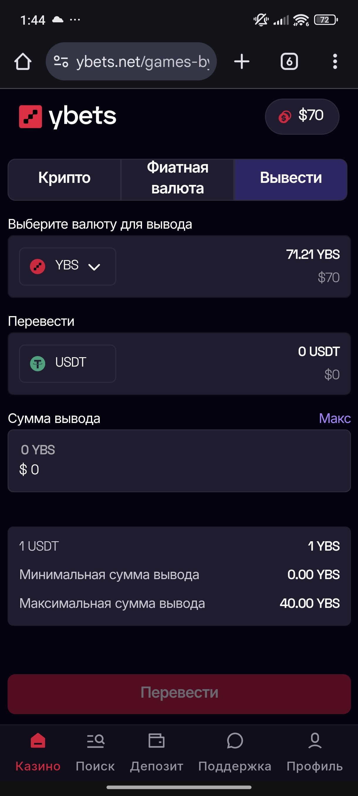 Ну ты отыграл вижу…теперь меняешь 40 ybs на usdt , и вывод, если деп был… если нет, то депай… я депал 1 usdt