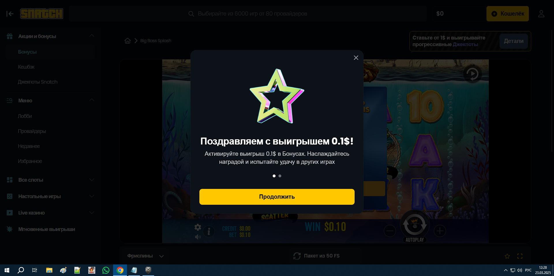 Snatch 50 фриспинов в рыбалке