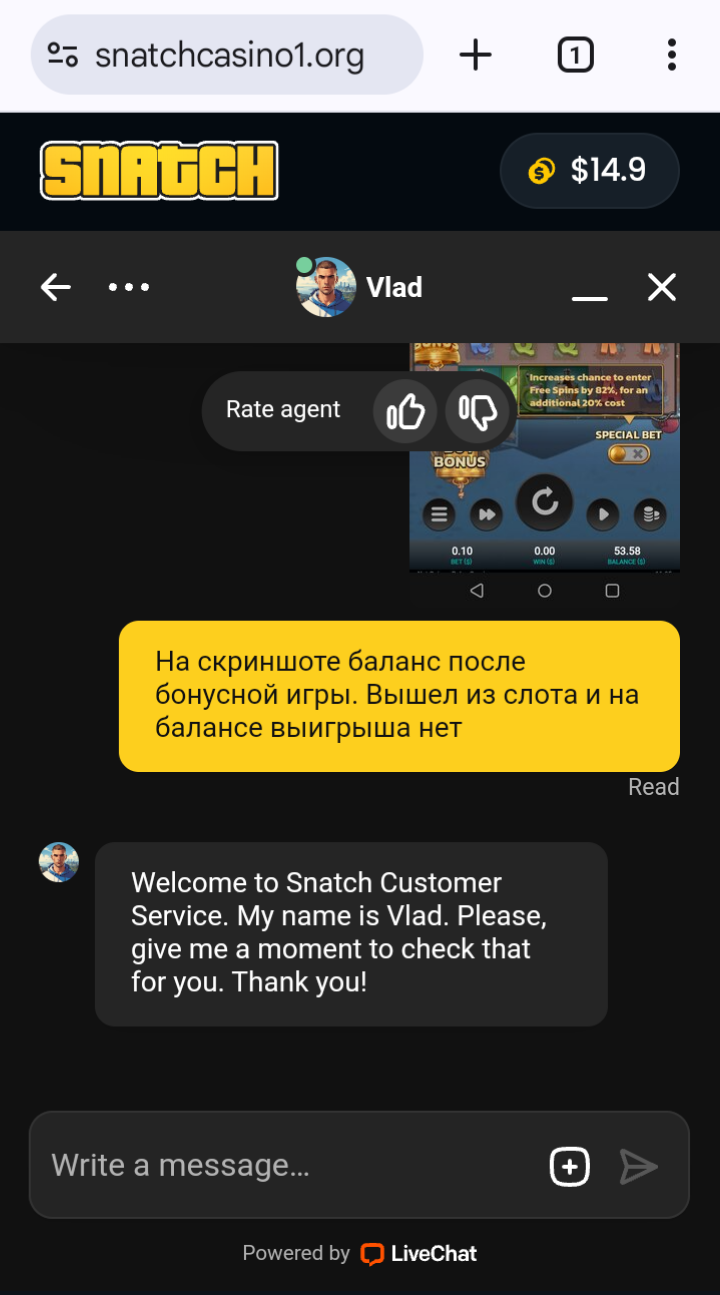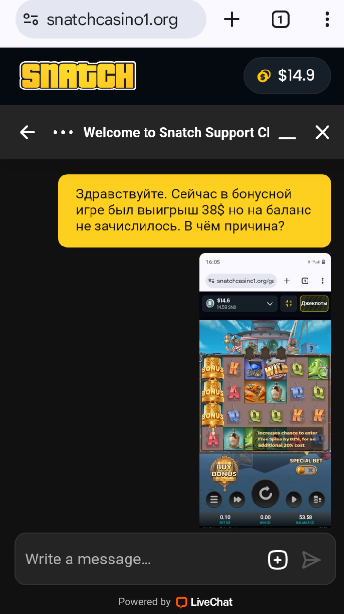 в snatch исполняют. С фс насыпало помелочи, начал мыть, постоянно ошибки выдавало, во всех слотах. Особо не скрывая вмешиваются в игру, искусственно генерируют помехи, т.к. ставки списываются с баланса даже с ошибками, а идёт серия пустых спинов, всё работает как часы. До кучи ещё в аккурат после бонуски выдало снова ошибку и тупо на балик не засчитало. Через чат куда то там пообещали передадут заявку, но думаю вряд ли что вернут. Правильно кто то здесь уже говорил, что этих ущербов только на бонусы абузить. На свои играть там – мазохизм.
