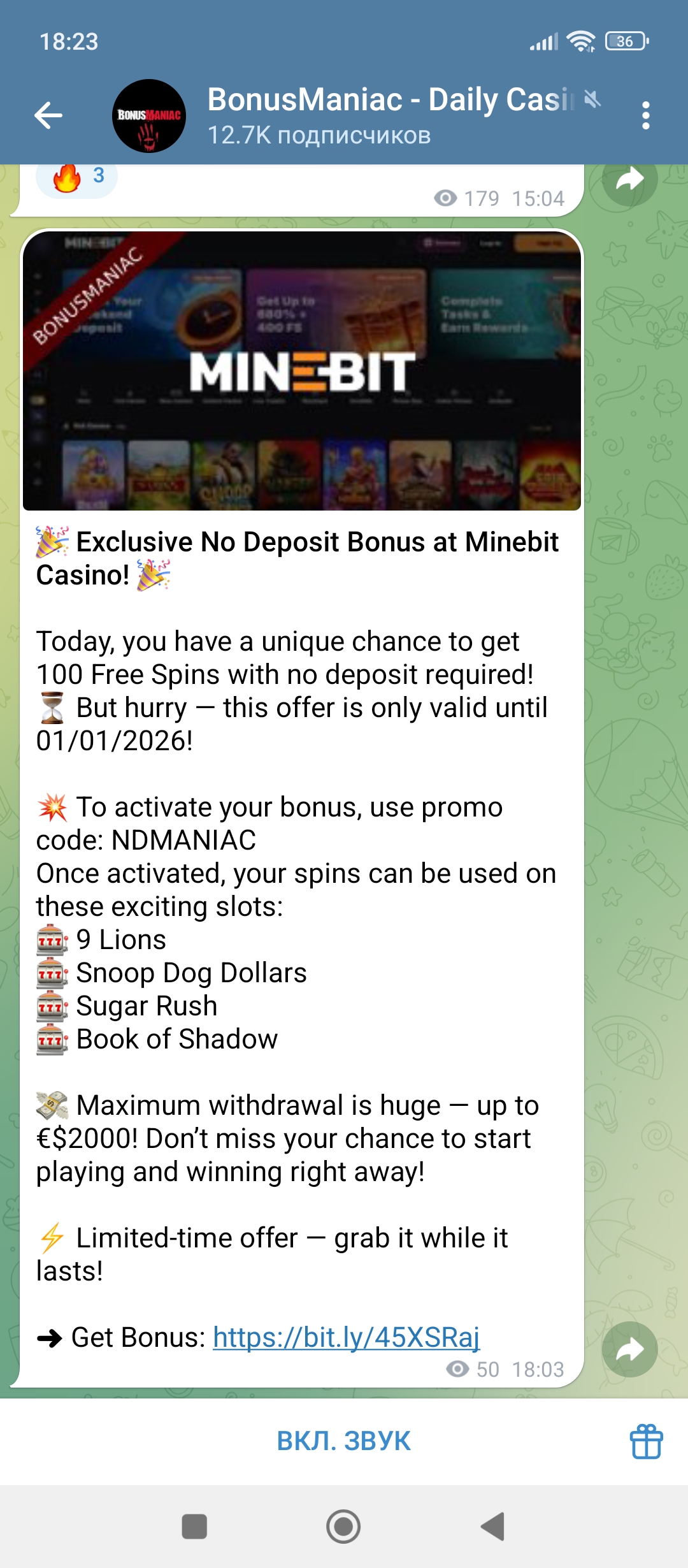 Казино Minebit при регистрации ввести промокод NDMANIAC, 100 фриспинов в 4 слотах на выбор,Макс кешаут 2к$. Регистрировался с маньяка,но возможно и кода при реге достаточно