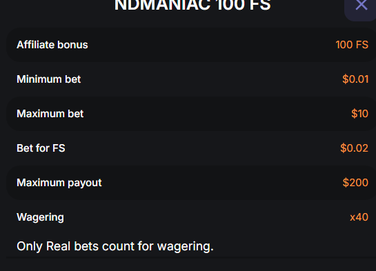 @robingood в правилах нет такого-что, вывести можно будет только х1 от того, что дали фс? А так, первый раз вижу это казино.