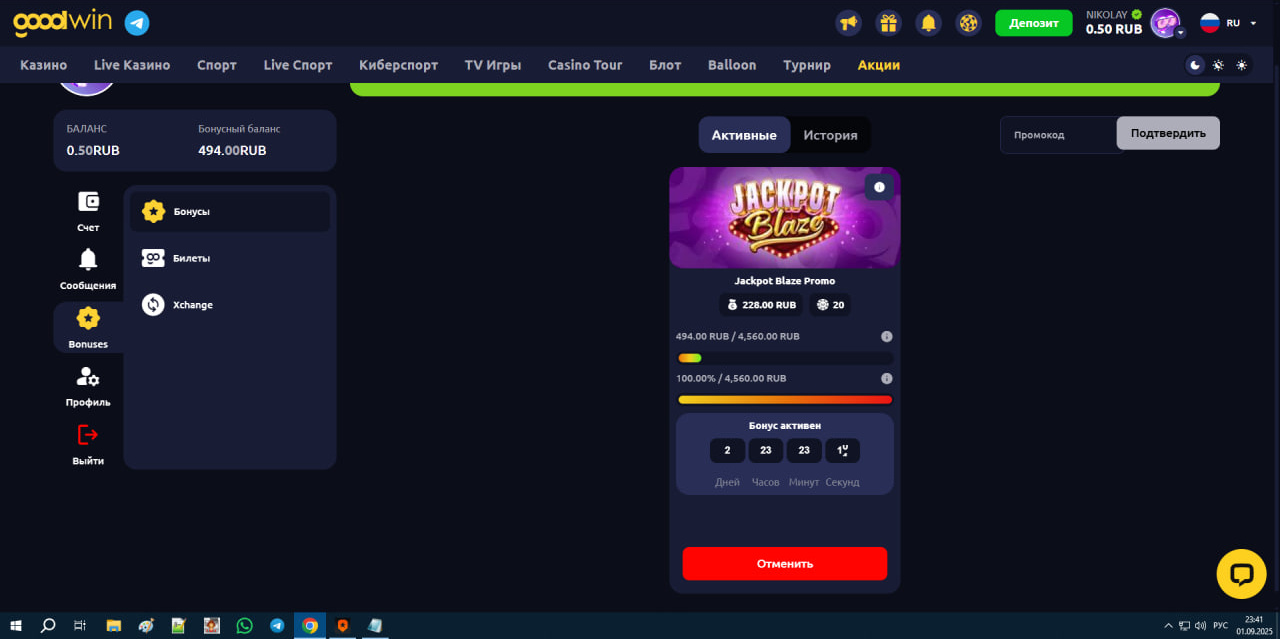 Например: в случае, если вы выиграли 1,000 рублей, превратив их в 10,000 рублей даже одним спином, отыгрыш будет считаться успешным.