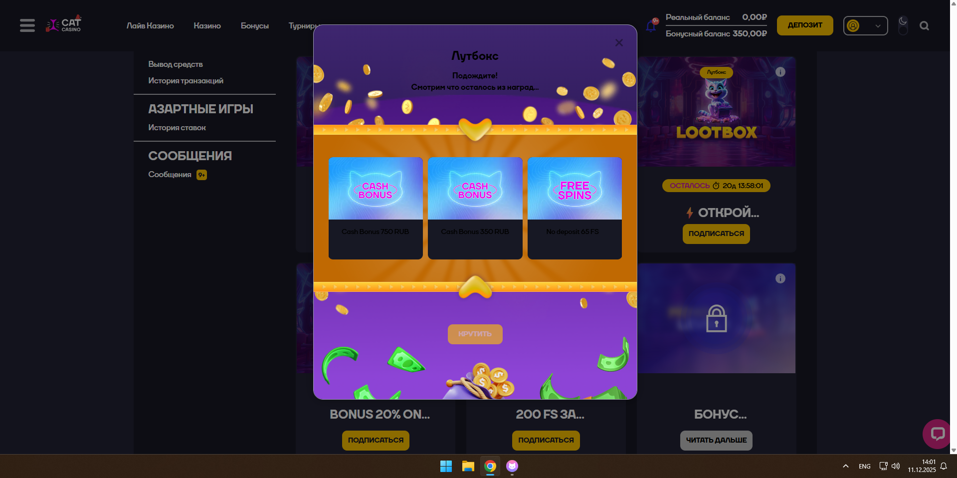 Лутбокс в котах лежал,выпало 350р,проверяйте у себя