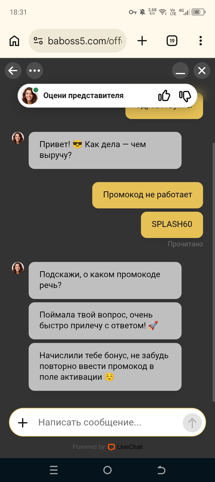 Baboss казіно гэта чысты скам, я пісаў раней, яны пасля выйгрышу з фрых, заблакавалі мне рахунак і прыпісалі дубль, гэта лютае смецце…