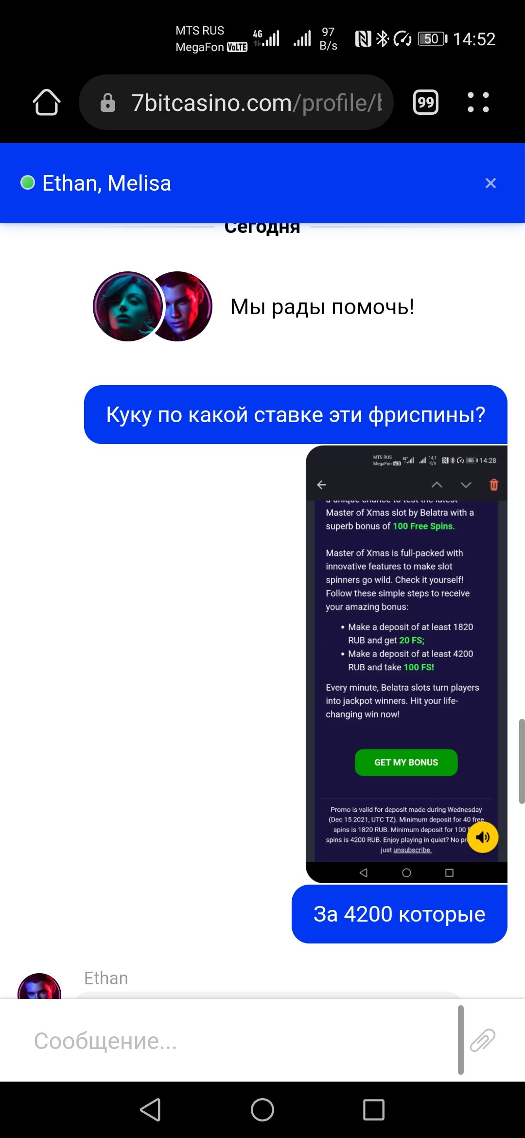 7bit Casino - поддержка представителем казино