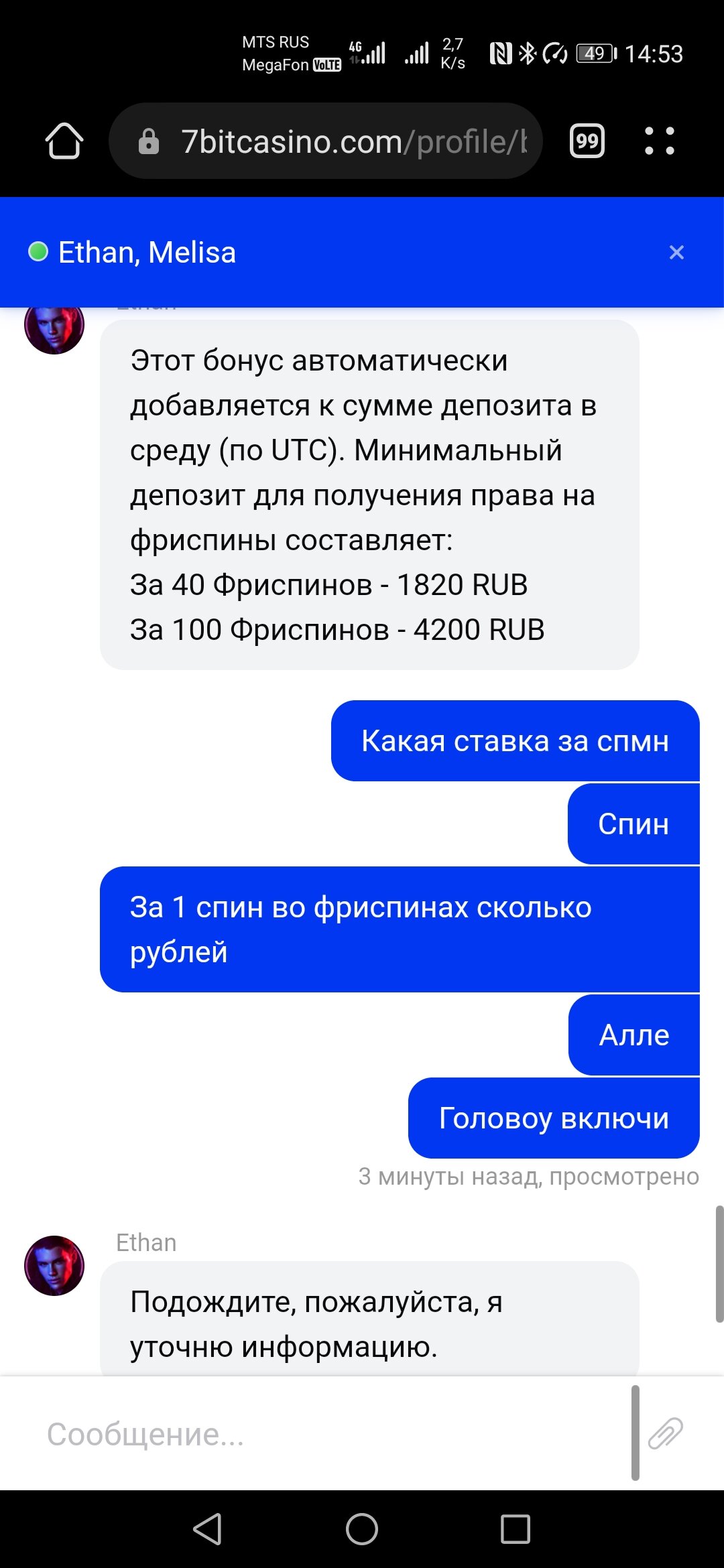 Остановись позорить онлайн-казино 7bit 😆