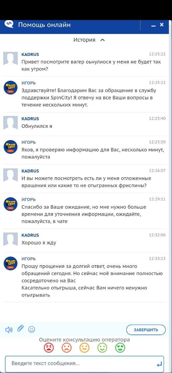 и не понятно как во второй раз после этого опять появился вагер ведь в чате проверили что вагера нет и дали мне ответ что можете играть вагера нет скрин прилагаю.