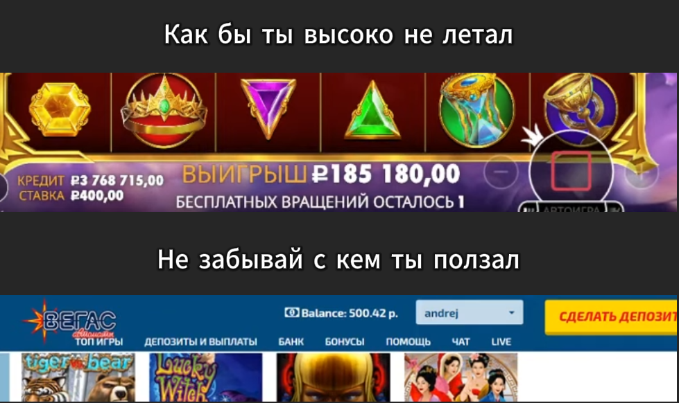 @sharovoi13 ты где видел что казино нёс ответственность?)Им пофиг,играй ,проигрывай и неси бабки,остальное им не интересно.Не знаю где ты играл бро)но казино всегда соскальзивает,благодаря таким как Слава он же Вячеслав решаются проблемы в пользу игрока.Конечно если со стороны игрока нет косяков.
