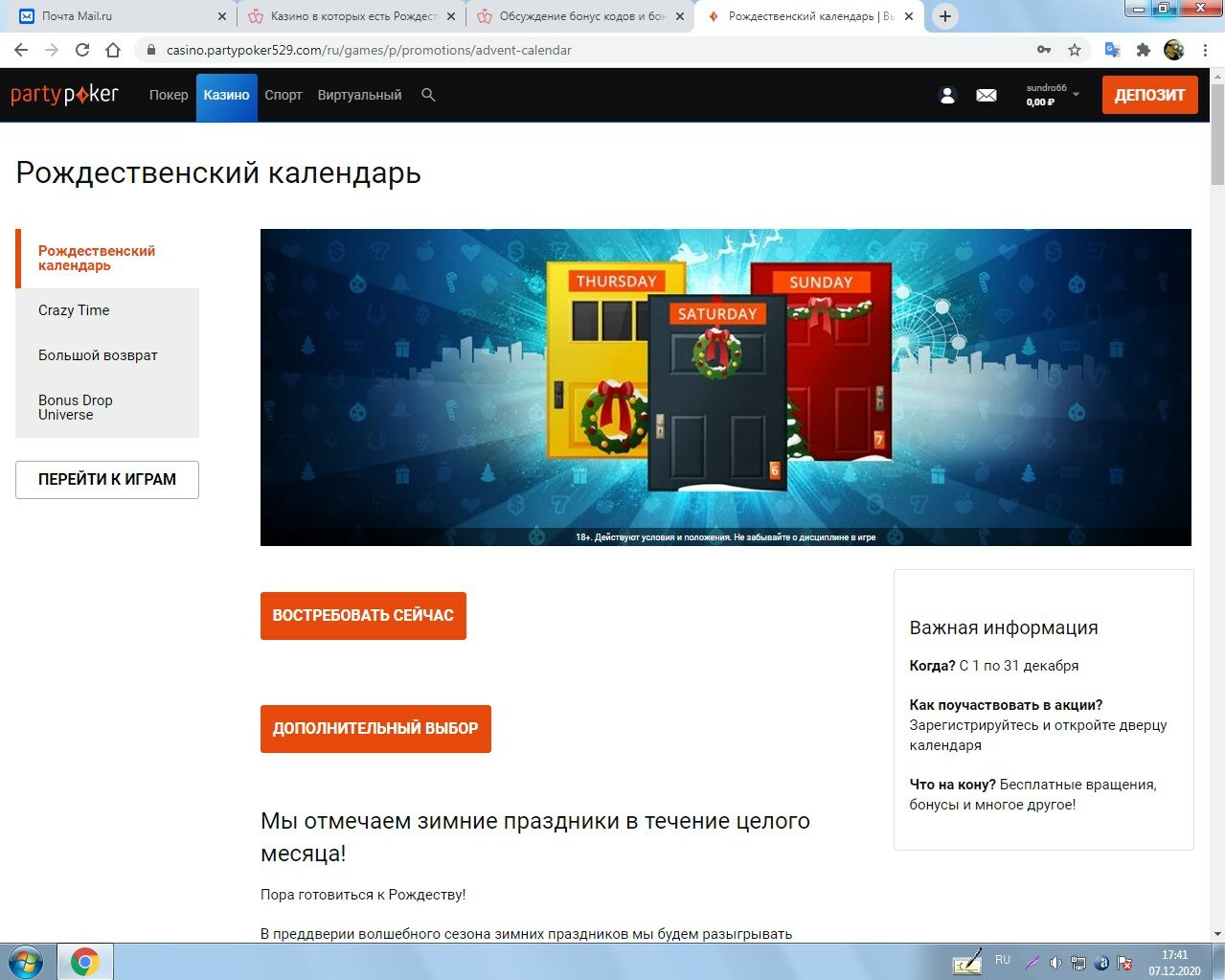 Казино в которых есть Рождественский календарь 2021