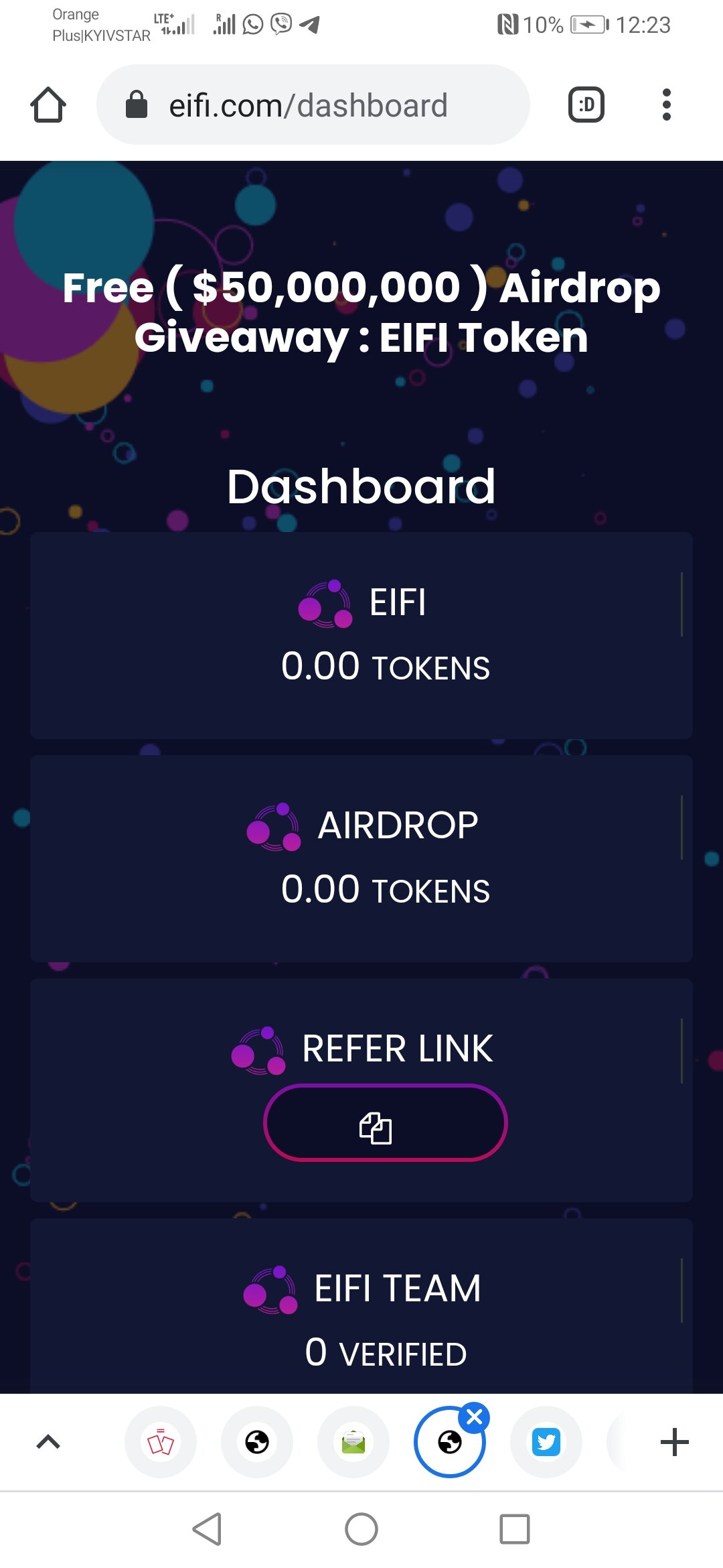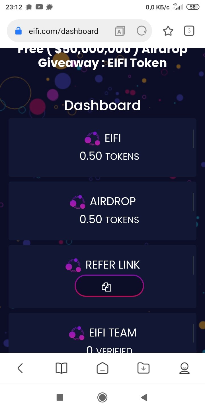 Ваш БЕСПЛАТНЫЙ токен 0,5 EIFI был зачислен в ваш бэк-офис, и вы можете получить 0,5 БЕСПЛАТНОГО токена реферала за каждого подтвержденного реферала!