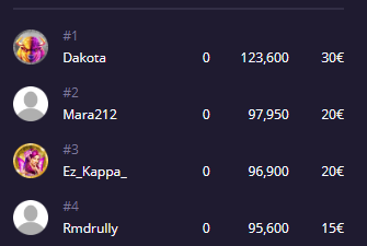 В социалке в покупных бонусках не удавалось поймать максималку,в прошлый неделе наконец то поймал 5000х был на 2 месте,через 2 часа уже 13ый)даже 5000х не дает гарантий что займешь призовые места.