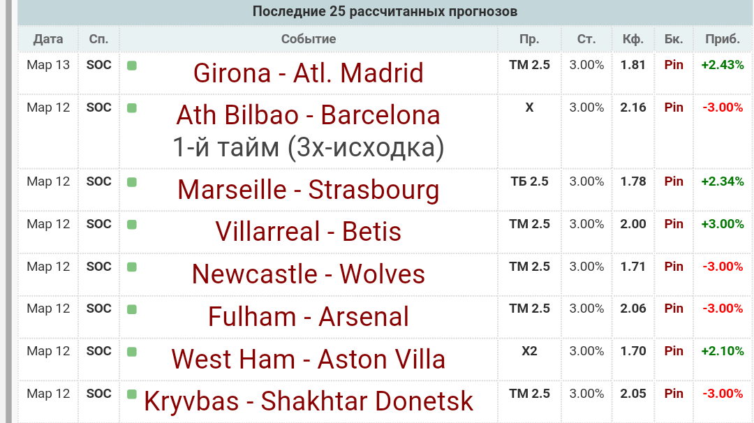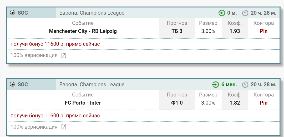 Прогнозы на футбол (ТОП 5, ЛЧ, ЛЭ, ЛК)