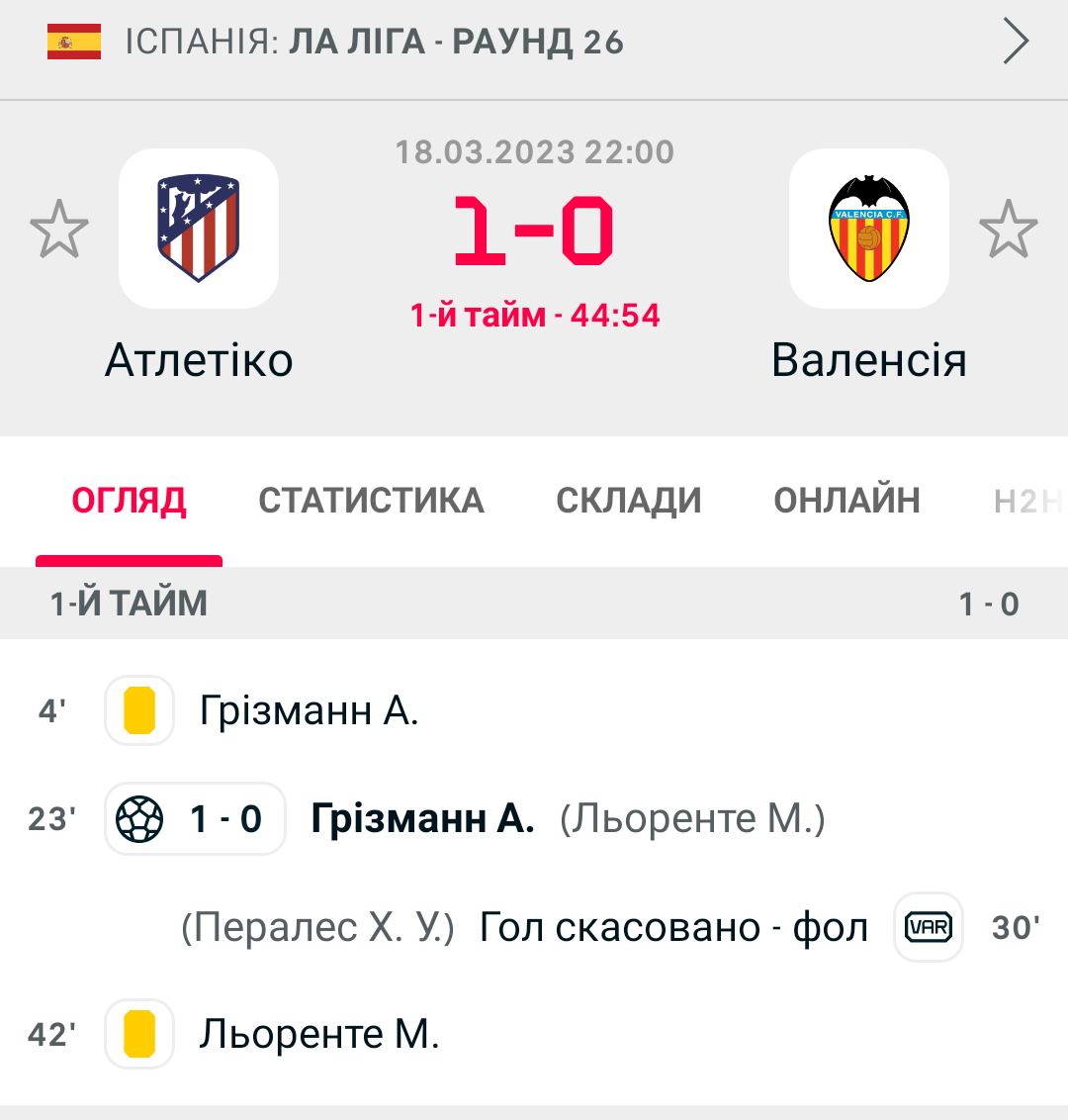 Зато в Испании ВАР против меня😅. Но я верю в характер Валенсии, которая может сровнять счет во втором тайме