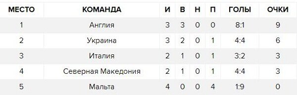 Турнирная таблица группы